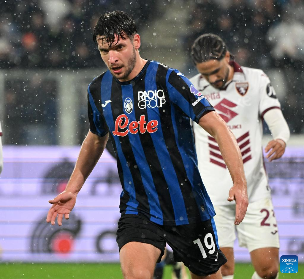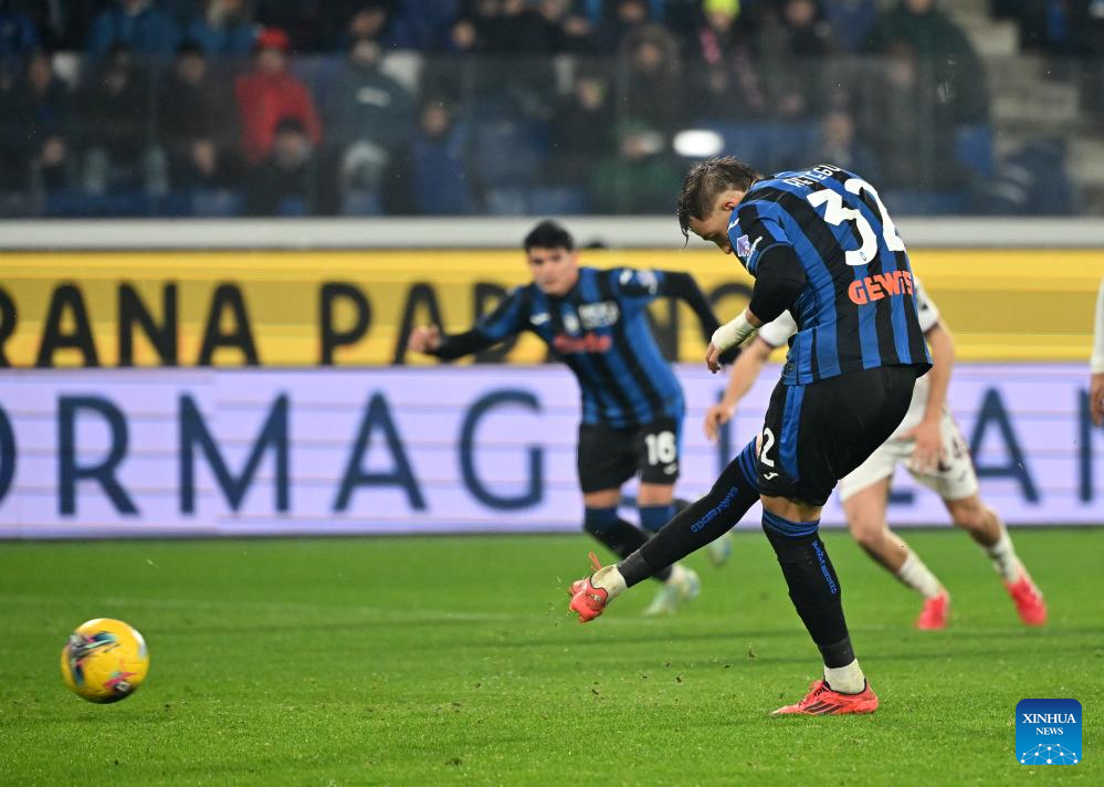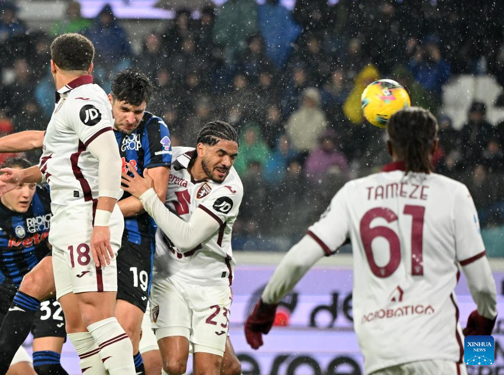 Atalanta's Berat Djimsiti (3rd L) scores his goal during a Serie A football match between Atalanta and Torino in Bergamo, Italy, Feb. 1, 2025. (Photo by Alberto Lingria/Xinhua)