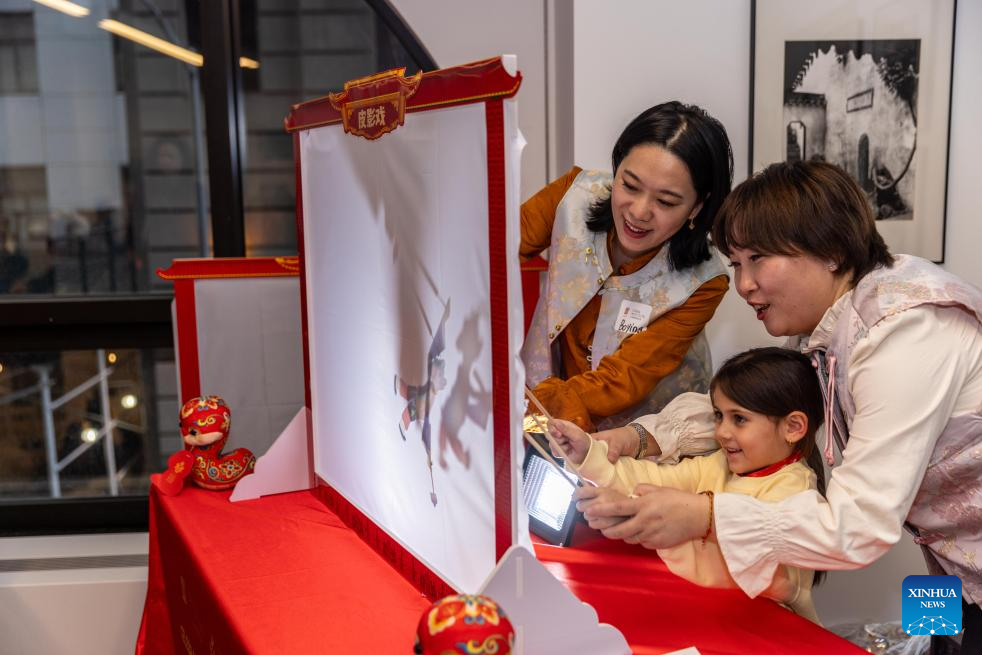 Visitors experience the art of shadow puppet play in New York City, the United States, on Feb. 2, 2025. Prince Kung's Palace Museum, one of the top-level museums and tourist sites in China, gave a new flavor to the Chinese New Year celebrations in the New York metropolitan area as it concluded its two-week visit to the United States. (Photo by Winston Zhou/Xinhua)