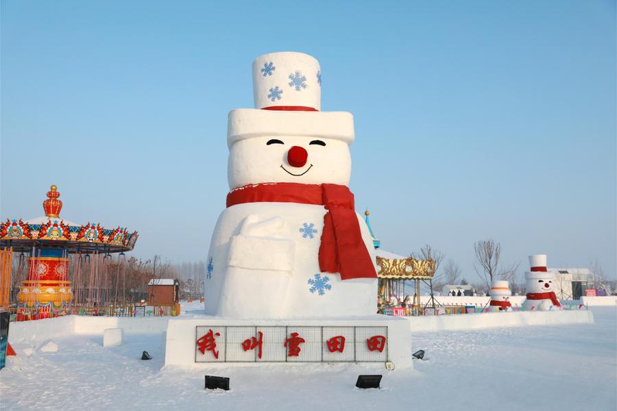 At the entrance of an ice-and-snow-themed amusement park, which opened less than two years ago, stands an eight-meter-tall snowman with a large hat, red scarf and wide grin. Cheerful visitors lined up to take photos with this giant park "resident."