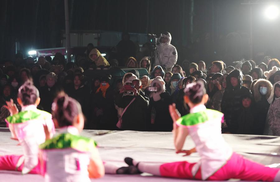People watch a "village gala" in Tangzhangzi Village of Beisijiazi Township in Chaoyang County, northeast China's Liaoning Province, Feb. 2, 2025. (Xinhua/Li Gang)