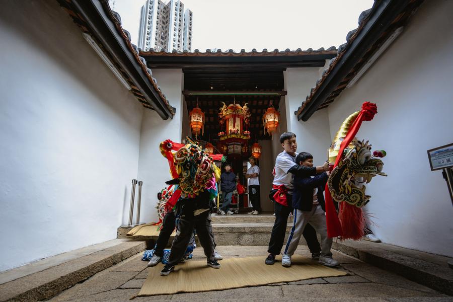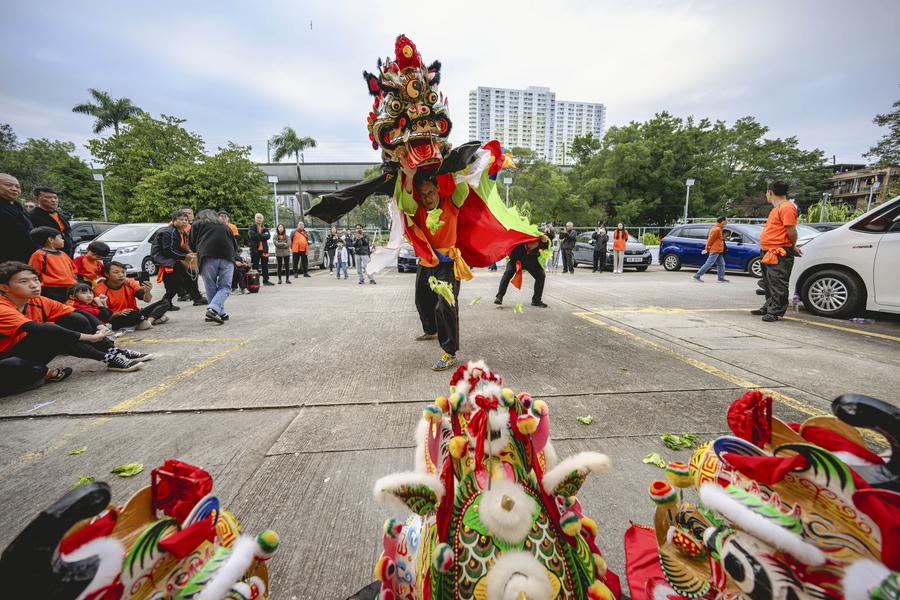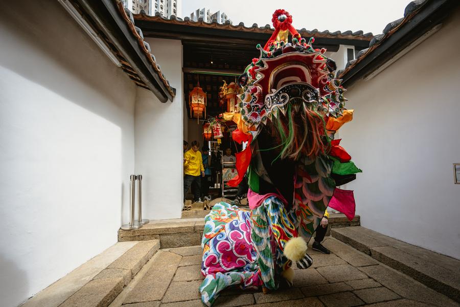In Hang Hau Village, the rhythmic chants of young and old performers resonate as villagers gather weekly to practice. The president of the local Hakka unicorn Qilin dance association, surnamed Lau, recalled to Xinhua how he and his fellow village boys became acquainted with this art form, initially a means of defense against pirates as they practiced Kung Fu in the early days.