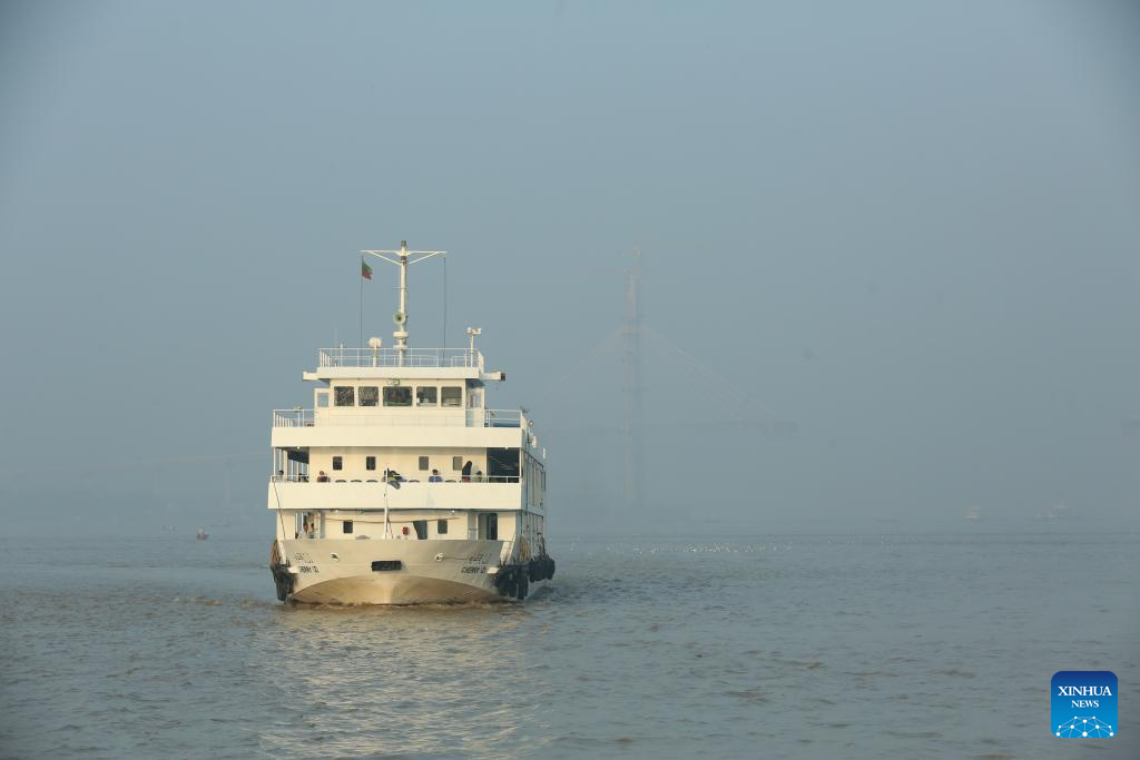 A ferry ship sails across the Yangon River in Yangon, Myanmar, Feb. 6, 2025.