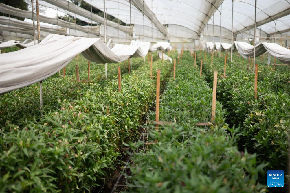 This photo taken on Feb. 5, 2025 shows a flower cultivation base in Cundinamarca, Colombia. (Photo by Andres Moreno/Xinhua)