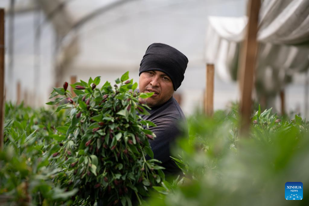 A florist works at a flower cultivation base in Cundinamarca, Colombia, Feb. 5, 2025. (Photo by Andres Moreno/Xinhua)
