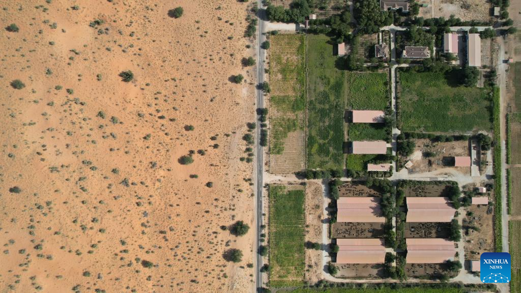 An aerial photo taken on Jan. 18, 2025 shows the Livestock Demonstration Center at the village of Idini in Mauritania.(Xinhua/Si Yuan)