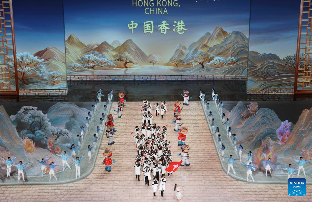Delegation of China's Hong Kong parade during the opening ceremony of the 9th Asian Winter Games in Harbin, northeast China's Heilongjiang Province, Feb. 7, 2025. (Xinhua/Huang Wei)
