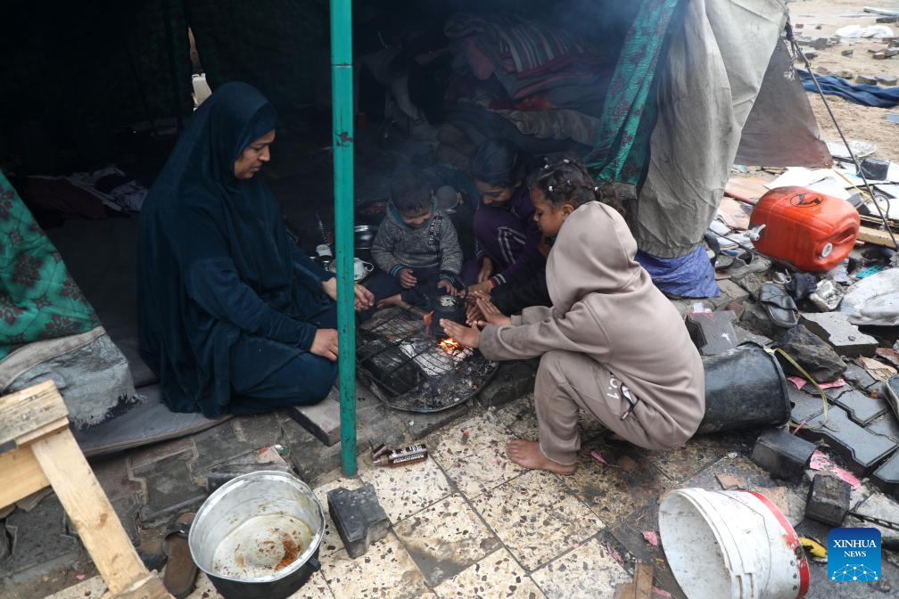 GAZA, Feb. 6 (Xinhua) -- A devastating winter storm has been sweeping through the Gaza Strip, making the displaced Palestinians' struggle for survival far more challenging.