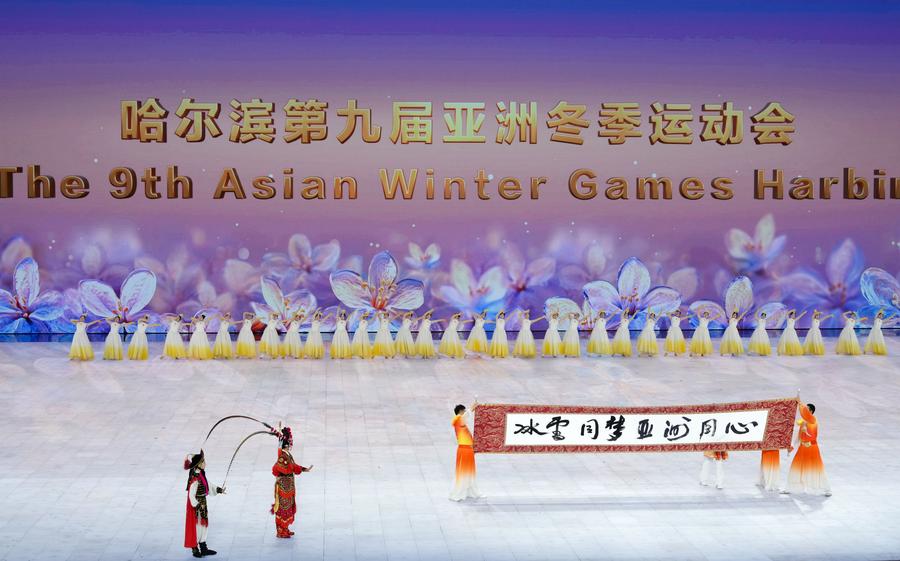 HARBIN, Feb. 7 (Xinhua) -- The 9th Asian Winter Games opened in Harbin on Friday night during a festive ceremony highlighting the city's ice and snow culture.