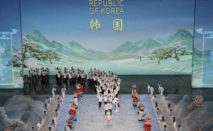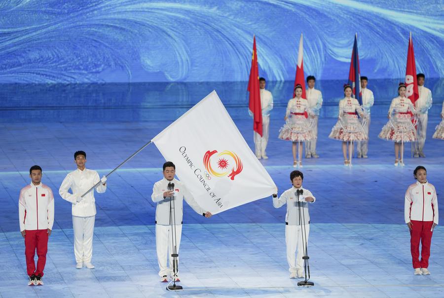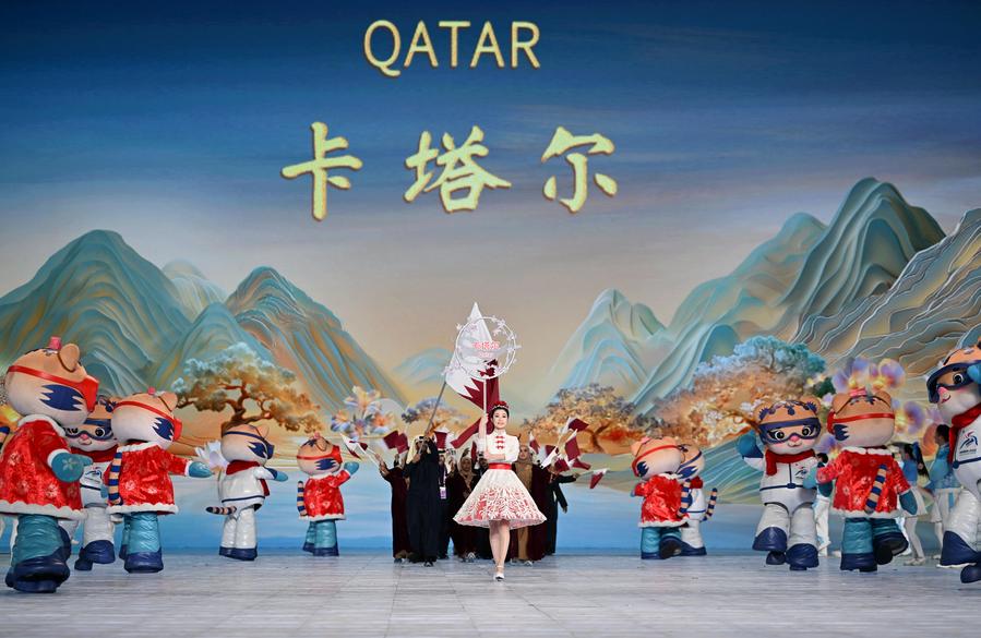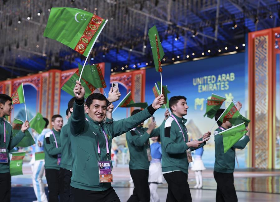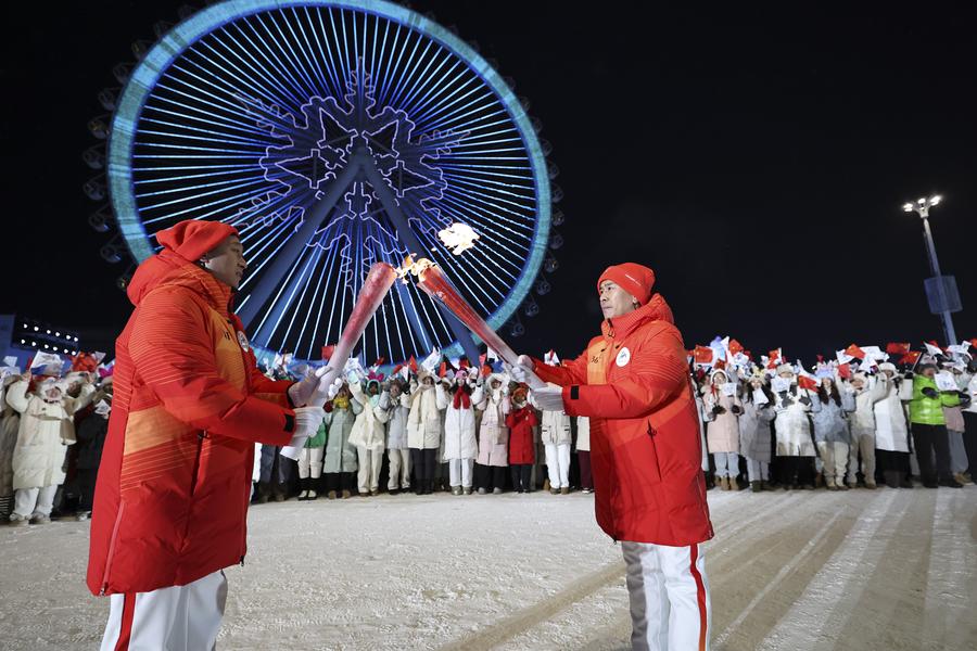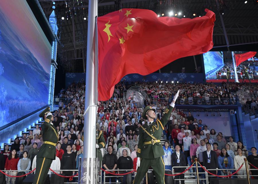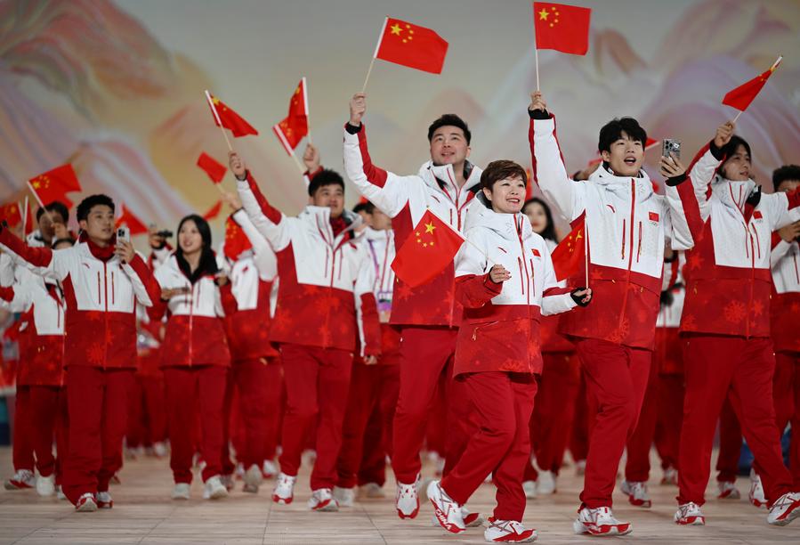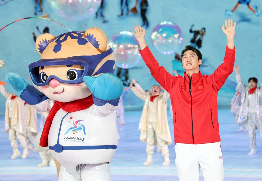 Artists perform prior to the opening ceremony of the 9th Asian Winter Games in Harbin, northeast China's Heilongjiang Province, Feb. 7, 2025. (Xinhua/Chen Yichen)Artists perform prior to the opening ceremony of the 9th Asian Winter Games in Harbin, northeast China's Heilongjiang Province, Feb. 7, 2025. (Xinhua/Yang Lei)Artists prepare prior to the opening ceremony of the 9th Asian Winter Games in Harbin, northeast China's Heilongjiang Province, Feb. 7, 2025. (Xinhua/Xu Yanan)Artists perform prior to the opening ceremony of the 9th Asian Winter Games in Harbin, northeast China's Heilongjiang Province, Feb. 7, 2025. (Xinhua/Wang Jianwei)Artists perform prior to the opening ceremony of the 9th Asian Winter Games in Harbin, northeast China's Heilongjiang Province, Feb. 7, 2025. (Xinhua/Xie Jianfei)Artists perform during the opening ceremony of the 9th Asian Winter Games in Harbin, northeast China's Heilongjiang Province, Feb. 7, 2025. (Xinhua/Chen Bin)Delegation of Uzbekistan parade during the opening ceremony of the 9th Asian Winter Games in Harbin, northeast China's Heilongjiang Province, Feb. 7, 2025. (Xinhua/Jiang Han)A child performs during the opening ceremony of the 9th Asian Winter Games in Harbin, northeast China's Heilongjiang Province, Feb. 7, 2025. (Xinhua/Wang Jianwei)Flagbearers carry the Chinese national flag into the stadium during the opening ceremony of the 9th Asian Winter Games in Harbin, northeast China's Heilongjiang Province, Feb. 7, 2025. (Xinhua/Chen Zhenhai)Delegation of South Korea parade during the opening ceremony of the 9th Asian Winter Games in Harbin, northeast China's Heilongjiang Province, Feb. 7, 2025. (Xinhua/Chen Yichen)Delegation of China parade during the opening ceremony of the 9th Asian Winter Games in Harbin, northeast China's Heilongjiang Province, Feb. 7, 2025. (Xinhua/Huang Wei)Artists perform during the opening ceremony of the 9th Asian Winter Games in Harbin, northeast China's Heilongjiang Province, Feb. 7, 2025. (Photo by Yuan Man/Xinhua)Members of the delegation of China parade during the opening ceremony of the 9th Asian Winter Games in Harbin, northeast China's Heilongjiang Province, Feb. 7, 2025. (Xinhua/Xie Jianfei)Artists perform during the opening ceremony of the 9th Asian Winter Games in Harbin, northeast China's Heilongjiang Province, Feb. 7, 2025. (Xinhua/Chen Yichen)Chinese athlete Wu Dajing and Binbin, mascot of the 9th Asian Winter Games Harbin 2025, react with spectators during the opening ceremony of the 9th Asian Winter Games in Harbin, northeast China's Heilongjiang Province, Feb. 7, 2025. (Xinhua/Huang Wei)Torch bearer Han Xiaopeng (R) passes the flame to Wang Zhen at the Harbin Ice and Snow World Park during the opening ceremony of the 9th Asian Winter Games in Harbin, northeast China's Heilongjiang Province, Feb. 7, 2025. (Xinhua/Zheng Huansong)Torch bearer Zhang Hong lights the cauldron at the Harbin Ice and Snow World Park during the opening ceremony of the 9th Asian Winter Games in Harbin, northeast China's Heilongjiang Province, Feb. 7, 2025. (Xinhua/Zhang Tao)Delegation of Turkmenistan parade during the opening ceremony of the 9th Asian Winter Games in Harbin, northeast China's Heilongjiang Province, Feb. 7, 2025. (Xinhua/Jiang Han)This photo taken on Feb. 7, 2025 shows the Harbin Ice and Snow World Park during the opening ceremony of the 9th Asian Winter Games in Harbin, northeast China's Heilongjiang Province. (Xinhua/Yue Yuewei)Fireworks explode at the Harbin Ice and Snow World Park during the opening ceremony of the 9th Asian Winter Games in Harbin, northeast China's Heilongjiang Province, Feb. 7, 2025. (Xinhua/Li Yibo)Zhang Chunhui (3rd L) and Chen Wenhong (2nd R), representatives of judges, take the oath during the opening ceremony of the 9th Asian Winter Games in Harbin, northeast China's Heilongjiang Province, Feb. 7, 2025. (Xinhua/Wang Jianwei)Artists perform during the opening ceremony of the 9th Asian Winter Games in Harbin, northeast China's Heilongjiang Province, Feb. 7, 2025. (Xinhua/Li Ziheng)Artists perform during the opening ceremony of the 9th Asian Winter Games in Harbin, northeast China's Heilongjiang Province, Feb. 7, 2025. (Xinhua/Huang Wei)Delegation of Qatar parade during the opening ceremony of the 9th Asian Winter Games in Harbin, northeast China's Heilongjiang Province, Feb. 7, 2025. (Xinhua/Xie Jianfei)Delegation of China's Hong Kong parade during the opening ceremony of the 9th Asian Winter Games in Harbin, northeast China's Heilongjiang Province, Feb. 7, 2025. (Xinhua/Huang Wei)Flagbearers carry the Chinese national flag into the stadium during the opening ceremony of the 9th Asian Winter Games in Harbin, northeast China's Heilongjiang Province, Feb. 7, 2025. (Xinhua/Yang Lei)The Chinese national flag is raised during the opening ceremony of the 9th Asian Winter Games in Harbin, northeast China's Heilongjiang Province, Feb. 7, 2025. (Xinhua/Jiang Han)■