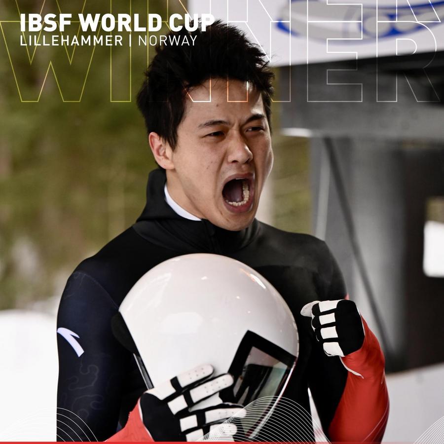 China's Lin Qinwei claimed his first title in the season's final men's skeleton race at the IBSF World Cup in Lillehammer, Norway on February 7.