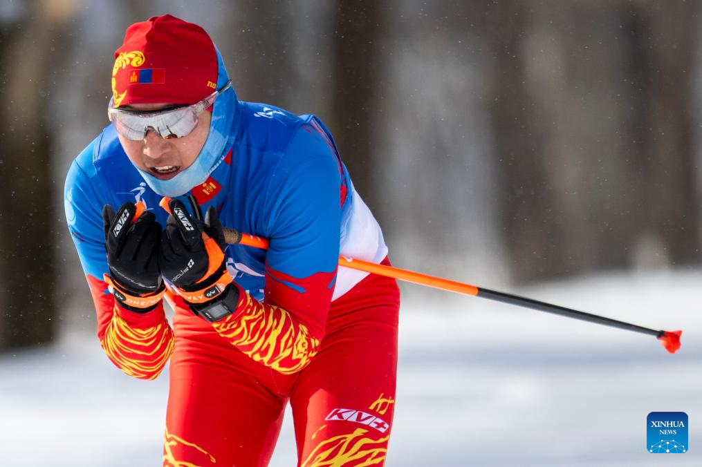 Munkhgerel Dashdondog of Mongolia competes during the men's sprint classic qualification match of the cross-country skiing event at the 9th Asian Winter Games in Yabuli, northeast China's Heilongjiang Province, Feb. 8, 2025. (Xinhua/Wu Zhizun)