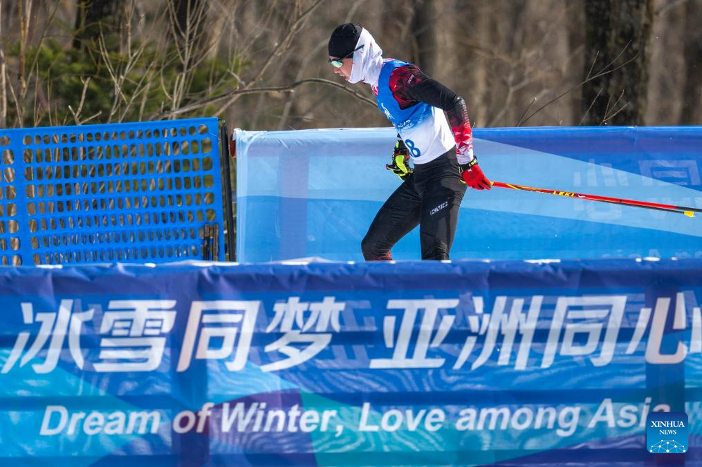 Musa Rakhmanberdi Uulu of Kyrgyzstan competes during the men's sprint classic qualification match of the cross-country skiing event at the 9th Asian Winter Games in Yabuli, northeast China's Heilongjiang Province, Feb. 8, 2025. (Xinhua/Wu Zhizun)