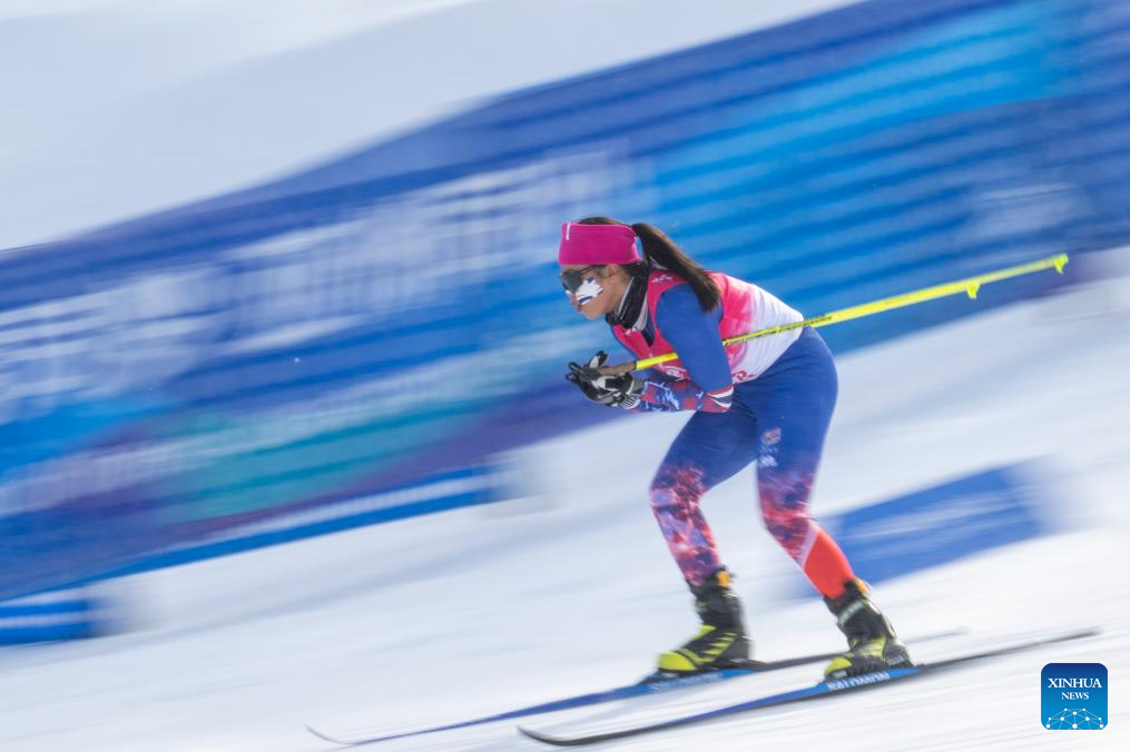 Phatcharapha Sangchan of Thailand competes during the women's sprint classic qualification match of the cross-country skiing event at the 9th Asian Winter Games in Yabuli, northeast China's Heilongjiang Province, Feb. 8, 2025. (Xinhua/Wu Zhizun)