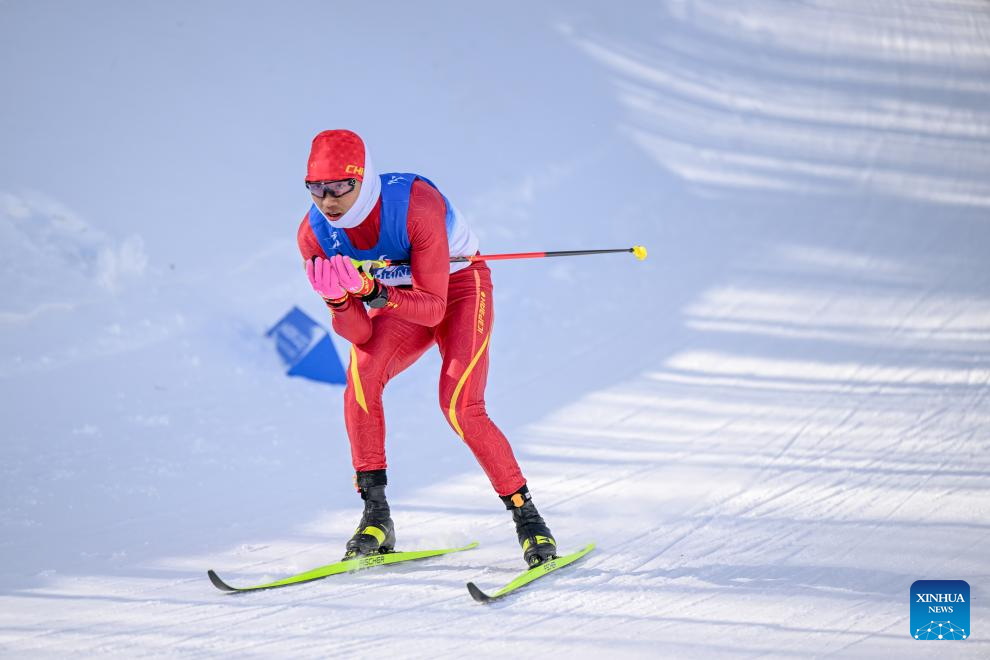Cirenzhandui of China competes during the men's sprint classic qualification match of the cross-country skiing event at the 9th Asian Winter Games in Yabuli, northeast China's Heilongjiang Province, Feb. 8, 2025. (Xinhua/Lian Zhen)