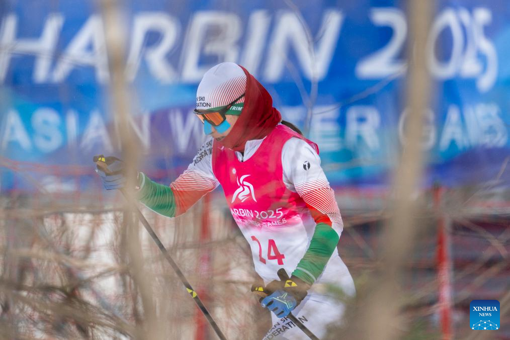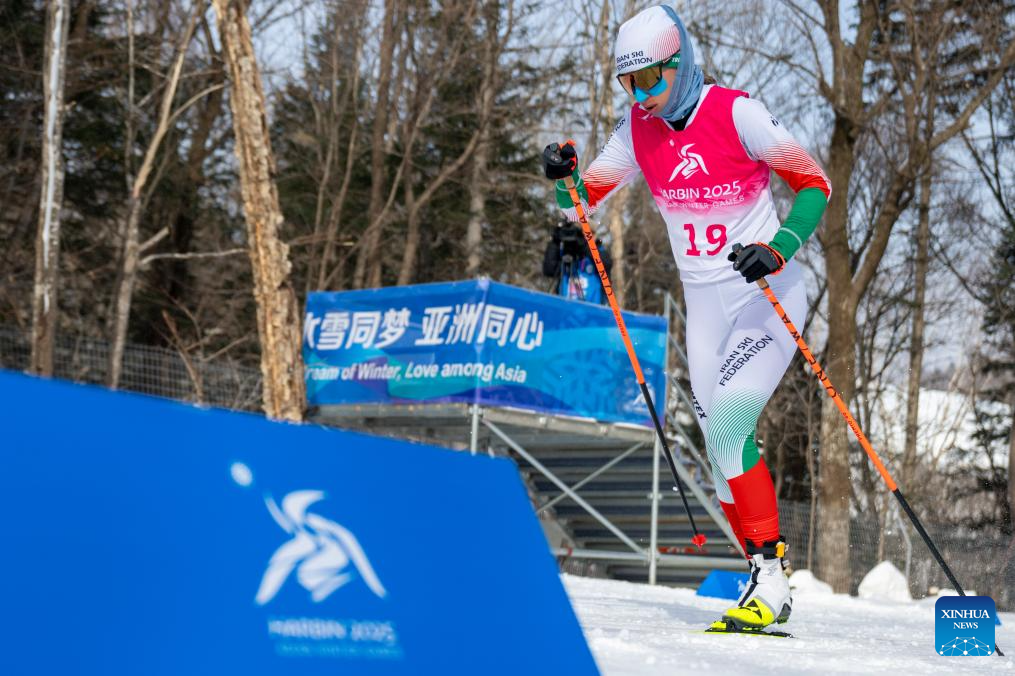 Sahel Tir of Iran competes during the women's sprint classic qualification match of the cross-country skiing event at the 9th Asian Winter Games in Yabuli, northeast China's Heilongjiang Province, Feb. 8, 2025. (Xinhua/Wu Zhizun)