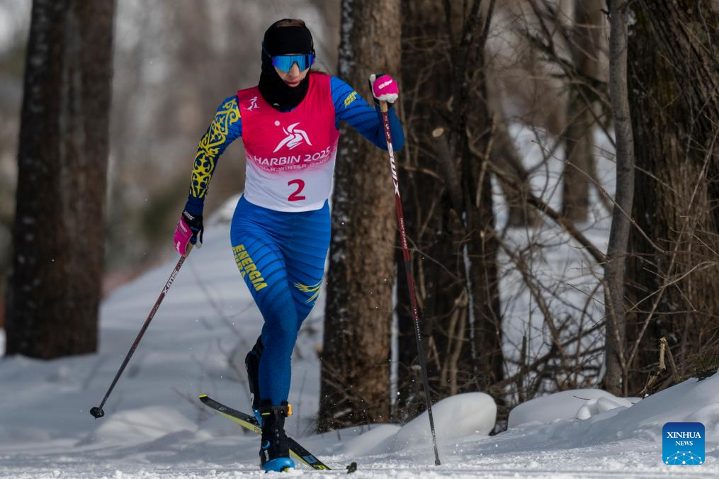 Xeniya Shalygina of Kazakhstan competes during the women's sprint classic qualification match of the cross-country skiing event at the 9th Asian Winter Games in Yabuli, northeast China's Heilongjiang Province, Feb. 8, 2025. (Xinhua/Wu Zhizun)