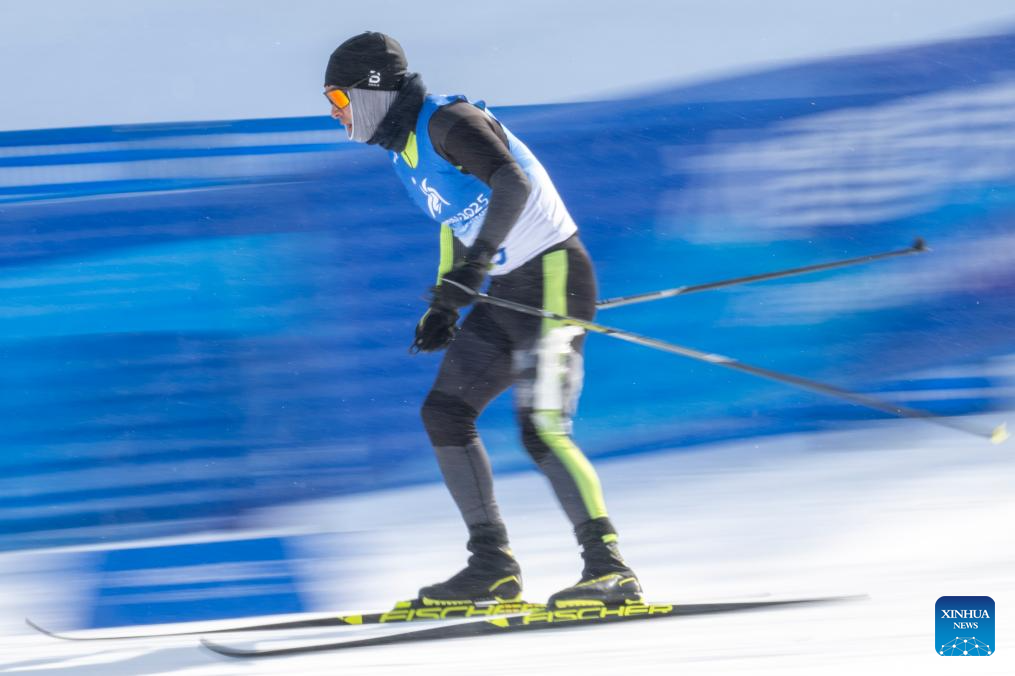 Padma Namgail of India competes during the men's sprint classic qualification match of the cross-country skiing event at the 9th Asian Winter Games in Yabuli, northeast China's Heilongjiang Province, Feb. 8, 2025. (Xinhua/Wu Zhizun)
