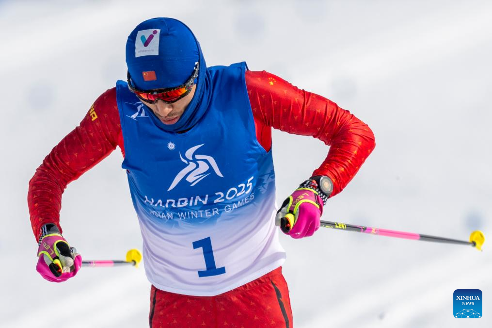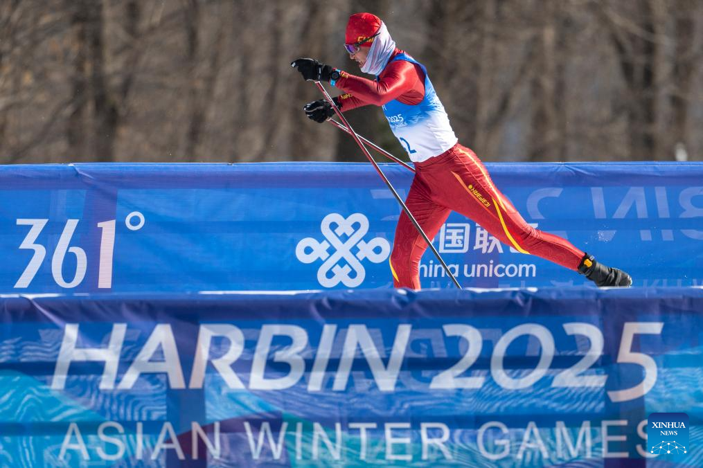 Saimuhaer Sailike of China competes during the men's sprint classic qualification match of the cross-country skiing event at the 9th Asian Winter Games in Yabuli, northeast China's Heilongjiang Province, Feb. 8, 2025. (Xinhua/Wu Zhizun)