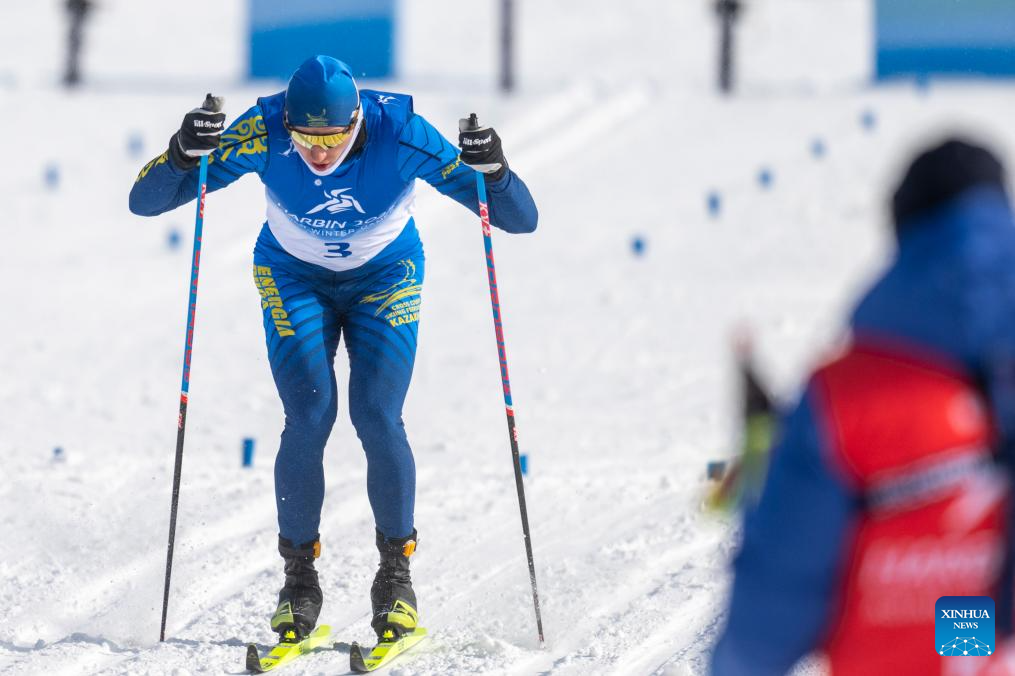 Vladislav Kovalyov of Kazakhstan competes during the men's sprint classic qualification match of the cross-country skiing event at the 9th Asian Winter Games in Yabuli, northeast China's Heilongjiang Province, Feb. 8, 2025. (Xinhua/Wu Zhizun)