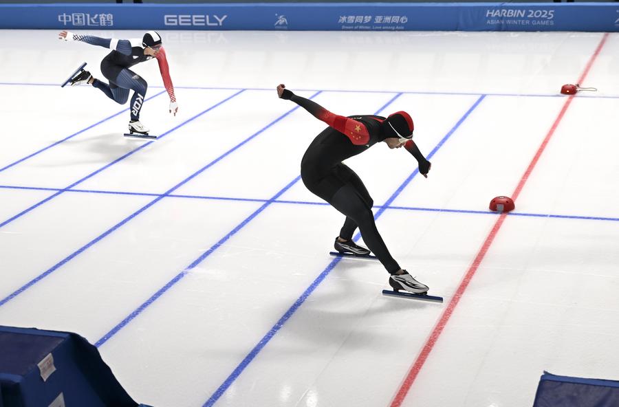 HARBIN, Feb. 8 (Xinhua) -- Olympic champion Gao Tingyu of China set off his second Asian Winter Games (AWG) campaign to a good start, winning the men's 100m gold at the Speed Skating Oval of the Heilongjiang Ice Training Center on Saturday.