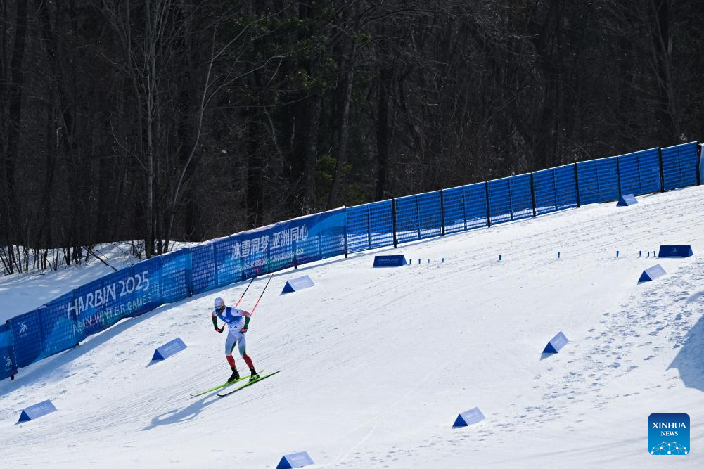 Li Minglin of China competes during the men's sprint classic qualification match of the cross-country skiing event at the 9th Asian Winter Games in Yabuli, northeast China's Heilongjiang Province, Feb. 8, 2025. (Xinhua/Zhang Long)