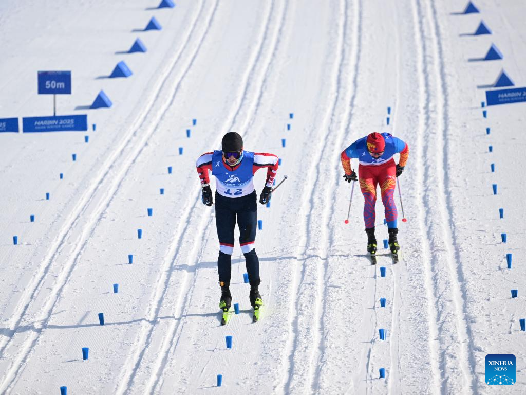 Skiers compete during the men's sprint classic qualification match of the cross-country skiing event at the 9th Asian Winter Games in Yabuli, northeast China's Heilongjiang Province, Feb. 8, 2025. (Xinhua/Zhang Long)