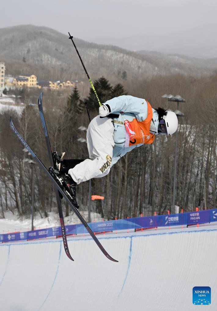 Zhang Kexin of China competes during the women's Freeski Halfpipe final match of the Freestyle Skiing event at the 9th Asian Winter Games in Yabuli, northeast China's Heilongjiang Province, Feb. 8, 2025. (Xinhua/Xia Yifang)