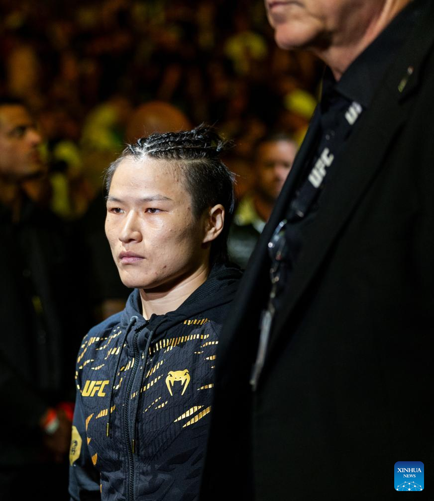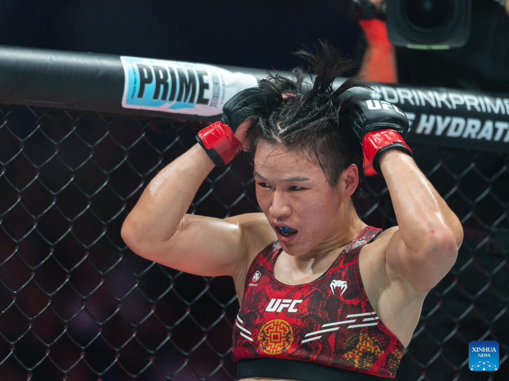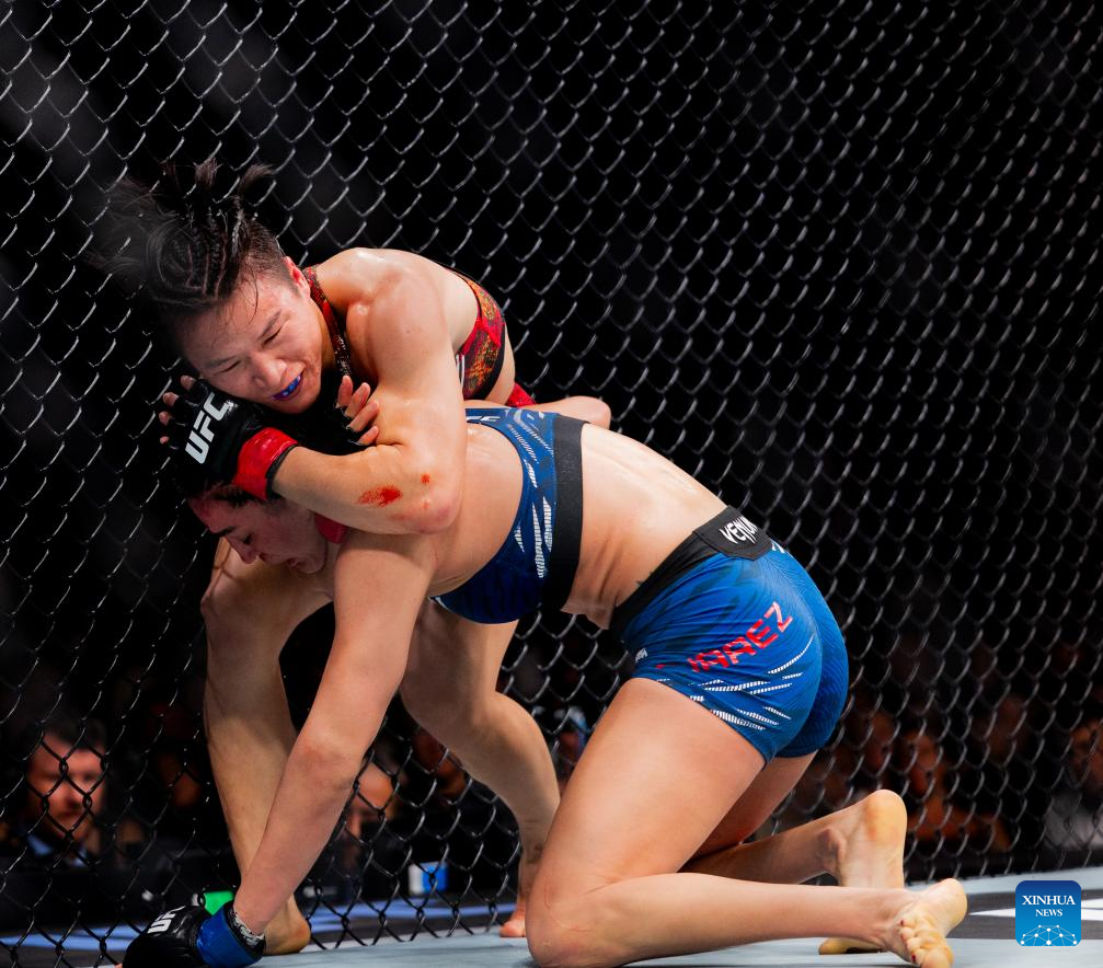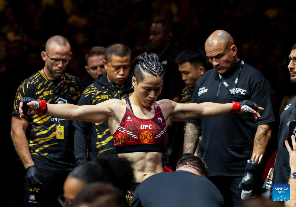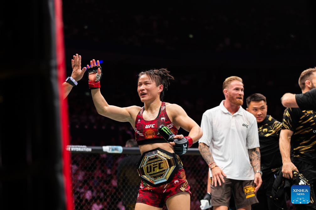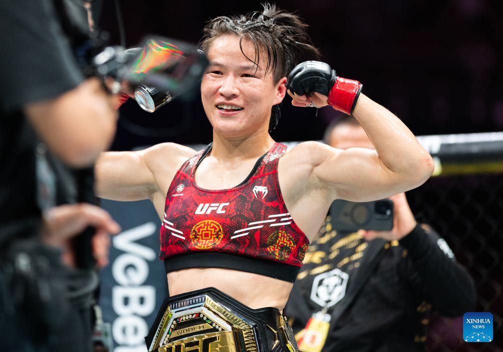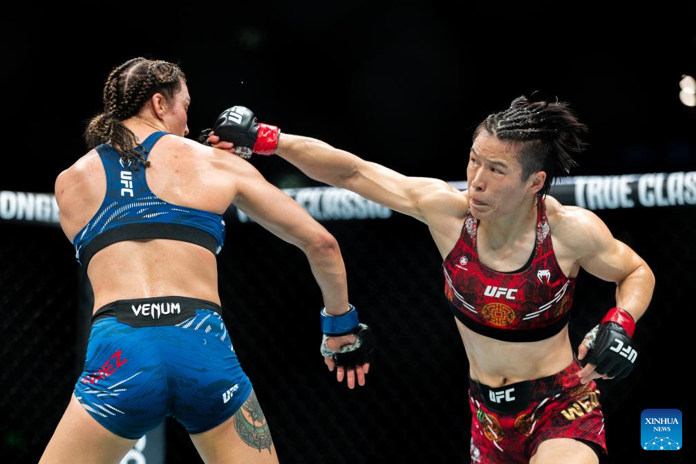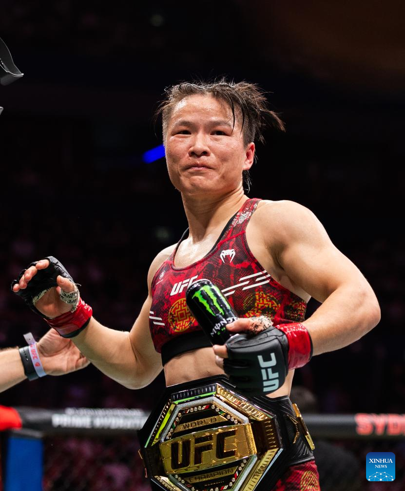 SYDNEY, Feb. 9 (Xinhua) -- China's Zhang Weili outlasted Tatiana Suarez of the United States with formidable striking power on Sunday to convincingly retain her UFC strawweight belt in Sydney.