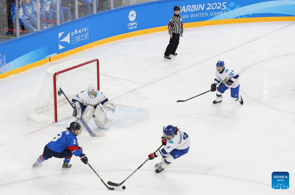 HARBIN, Feb. 9 (Xinhua) -- Kazakhstan maintained its undefeated record in women's ice hockey, beating South Korea 1-0 in overtime at the 2025 Harbin Asian Winter Games on Sunday with both teams having secured their spots in the medal round by finishing top two in Group B.