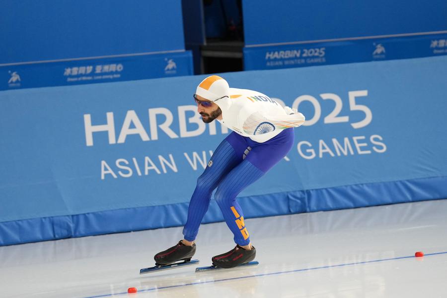 HARBIN, Feb. 10 (Xinhua) -- Vishwaraj Rajendrasinh Jadeja stepped off the ice, his breath still heavy from the grueling 5,000-meter race at the Harbin 2025 Asian Winter Games. A thin sheen of sweat lingered on his forehead as he walked into the mixed zone, his body exhausted yet his spirit undeterred.