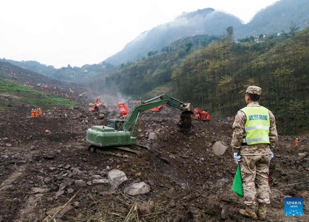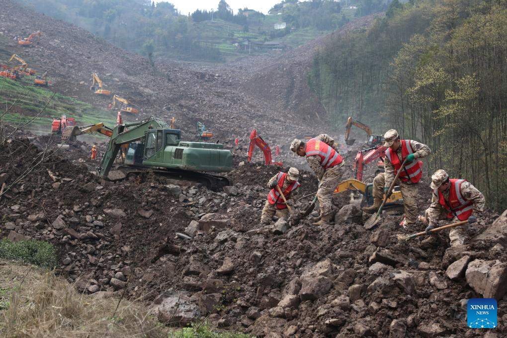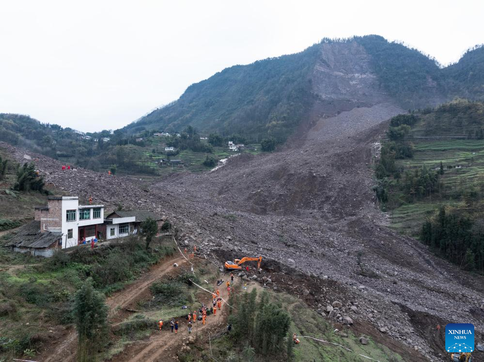 CHENGDU, Feb. 10 (Xinhua) -- Rescuers are working around the clock to locate survivors after a landslide hit a village in Sichuan Province, southwest China Saturday morning.