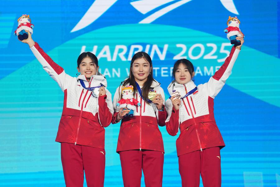 HARBIN, Feb. 10 (Xinhua) -- Bayani Jialin, the daughter of a Kazakh herder from China's northwest border, never imagined she would stand atop the podium at an international competition just eight years after taking up skiing.