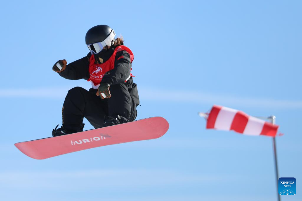 Xiong Shirui of China competes during the women's snowboard big air final match at the 9th Asian Winter Games in Yabuli, northeast China's Heilongjiang Province, Feb. 10, 2025. (Xinhua/Yang Guanyu)