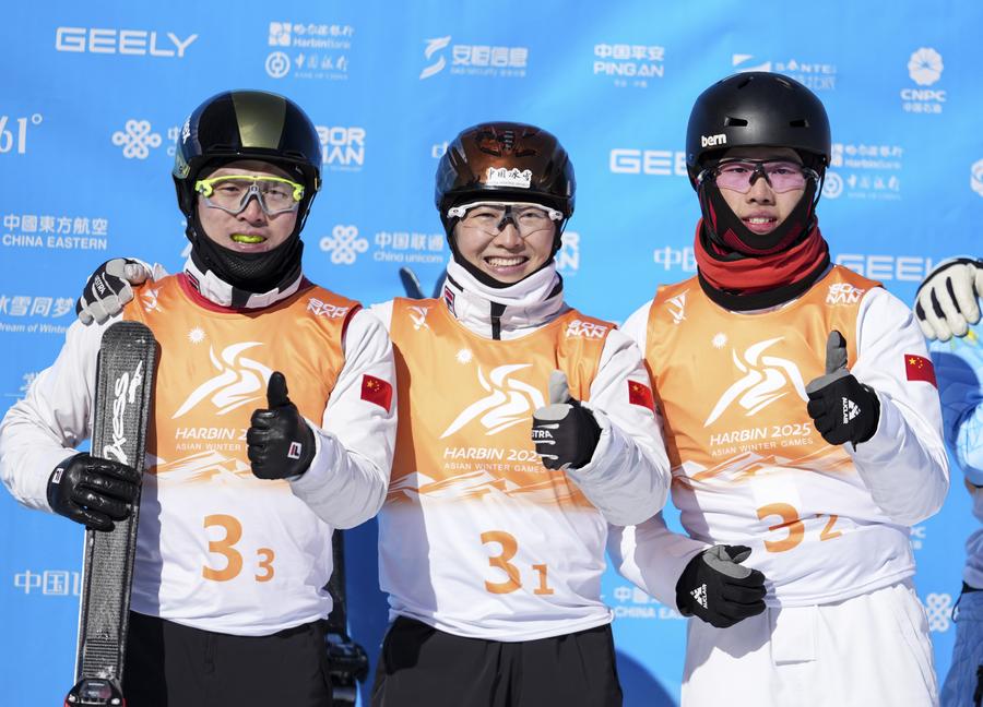 HARBIN, Feb. 10 (Xinhua) -- China dominated the freestyle skiing mixed team aerials at the 2025 Asian Winter Games on Monday, securing gold with 305.64 points.