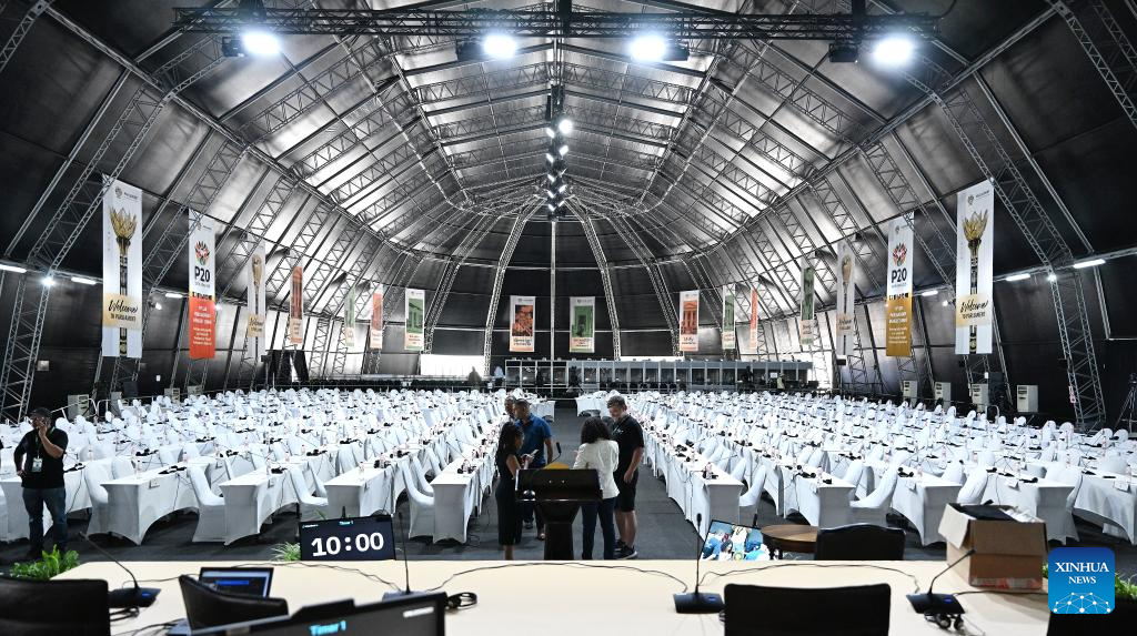 People are seen in a giant dome used as a temporary chamber of the South African National Assembly in Cape Town, South Africa, on Feb. 10, 2025. The South African National Assembly officially began using a repurposed dome as its temporary chamber on Monday, to ensure the continuity of parliamentary proceedings after a devastating fire destroyed the historic parliamentary buildings in 2022. (Photo by Xabiso Mkhabela/Xinhua)