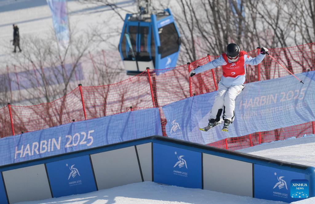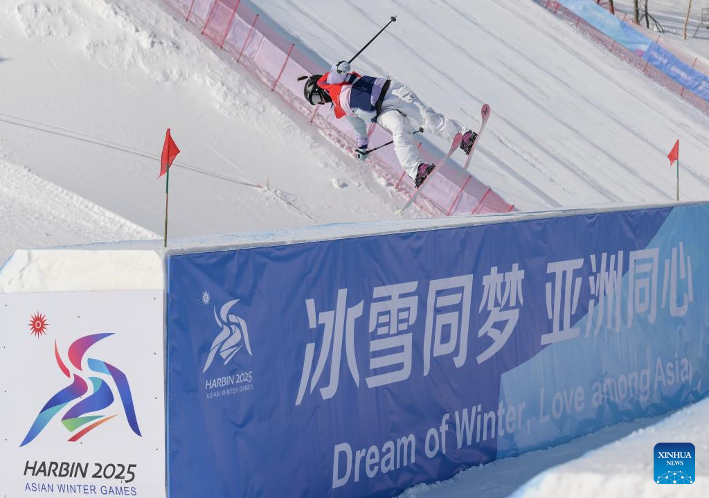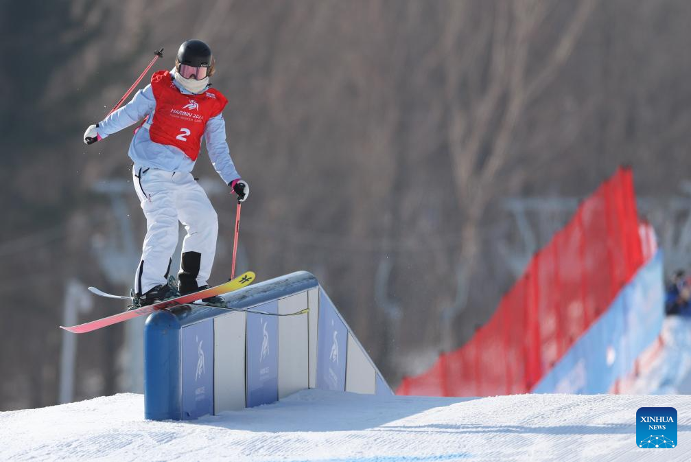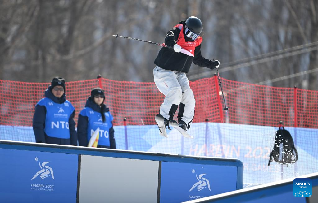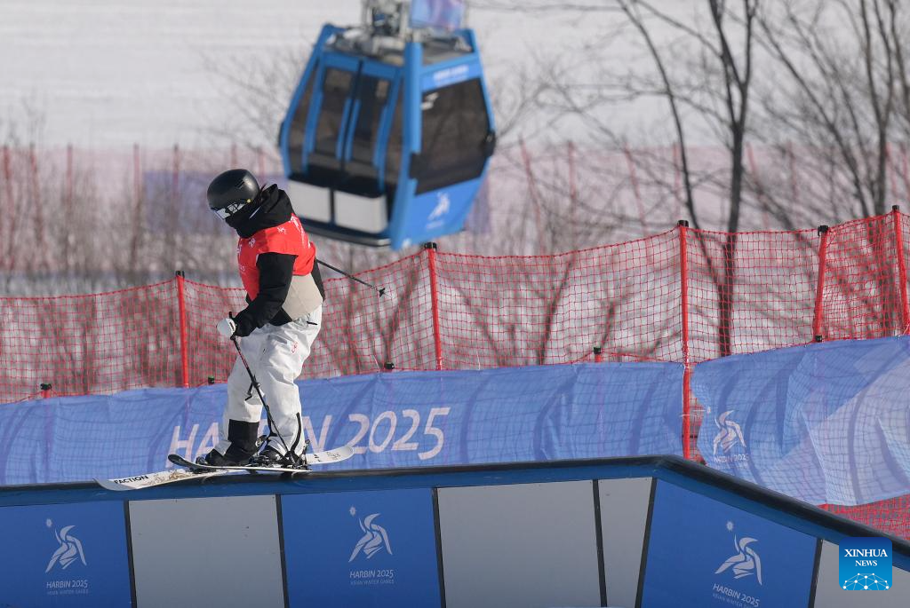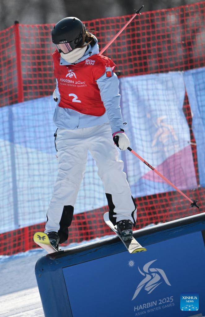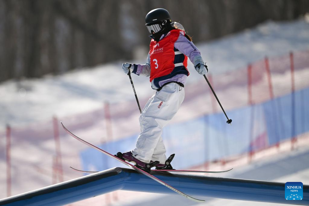 Han Linshan of China competes during the Freestyle Skiing women's freeski slopestyle final at the 9th Asian Winter Games in Yabuli, northeast China's Heilongjiang Province, Feb. 11, 2025. (Xinhua/Yang Qing)