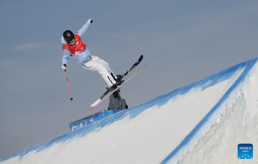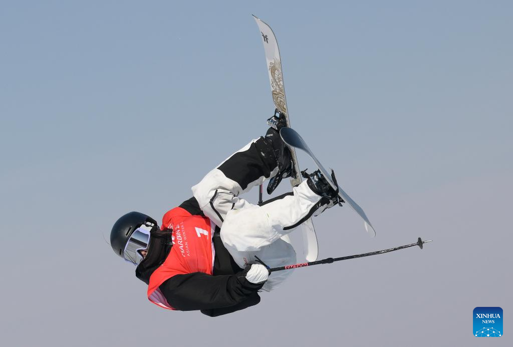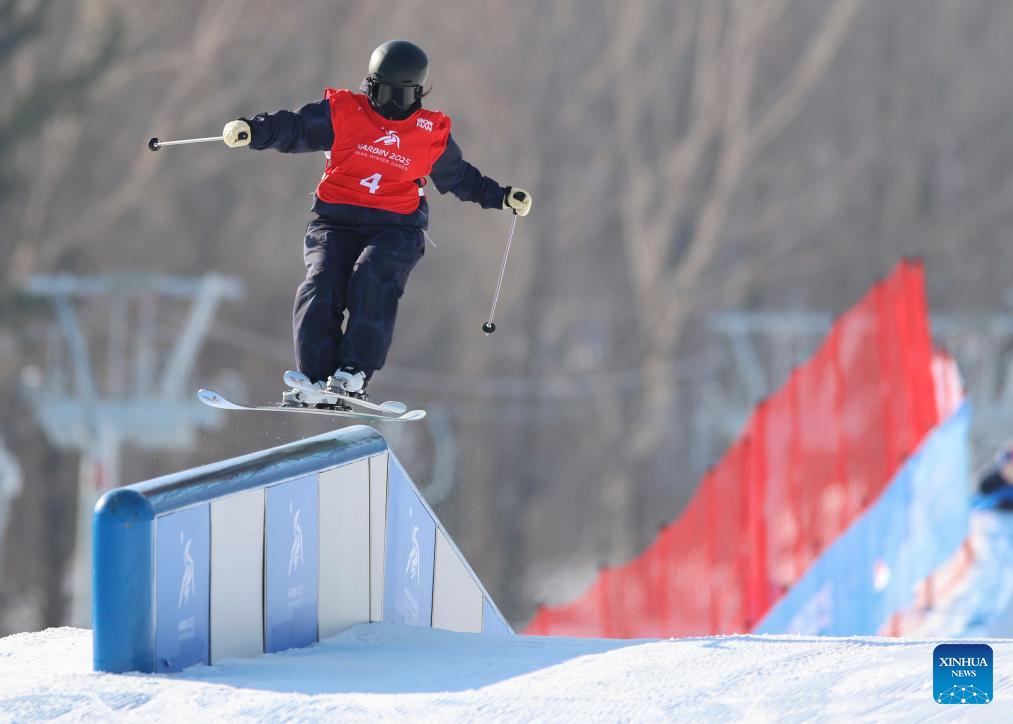 Han Linshan of China competes during the Freestyle Skiing women's freeski slopestyle final at the 9th Asian Winter Games in Yabuli, northeast China's Heilongjiang Province, Feb. 11, 2025. (Xinhua/Mu Yu)