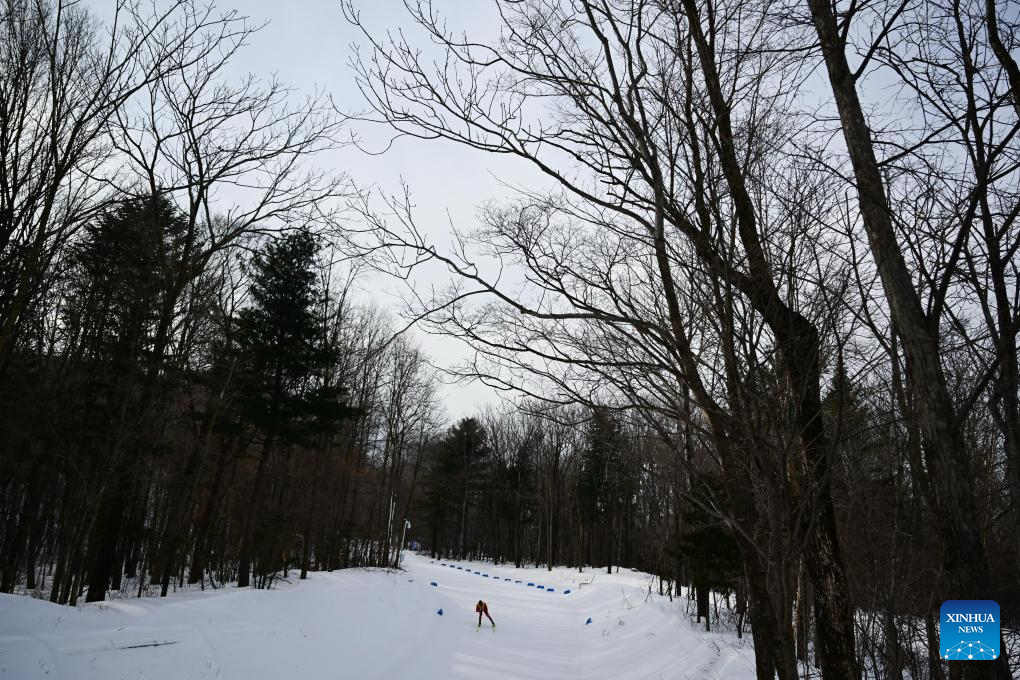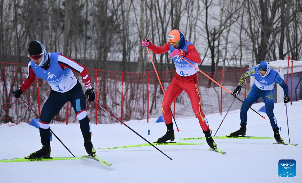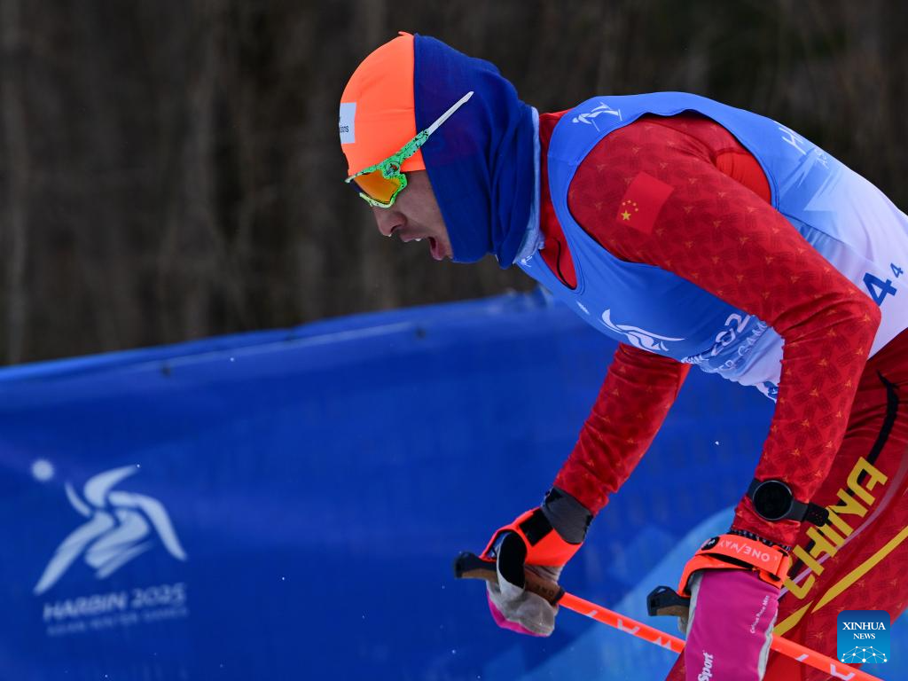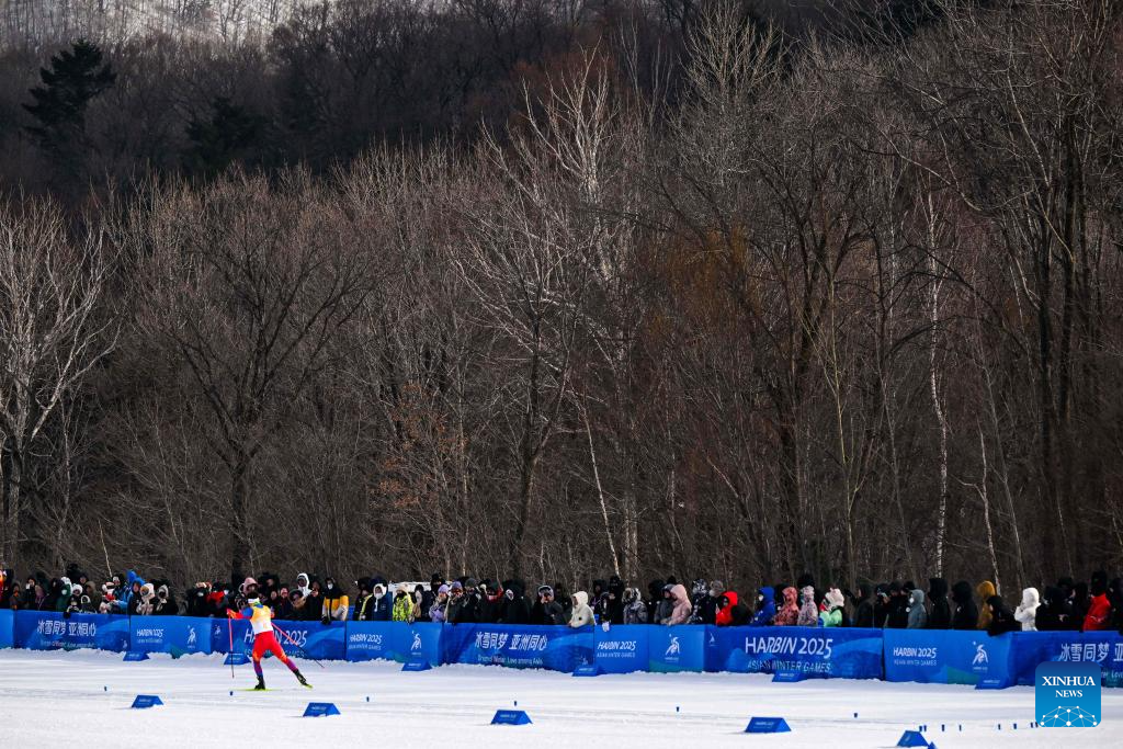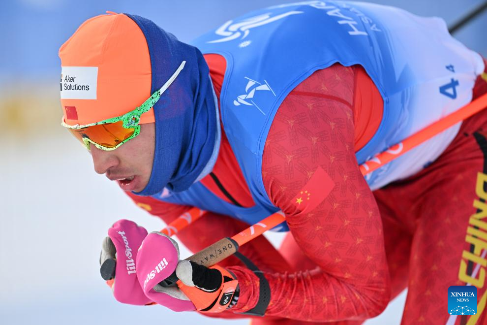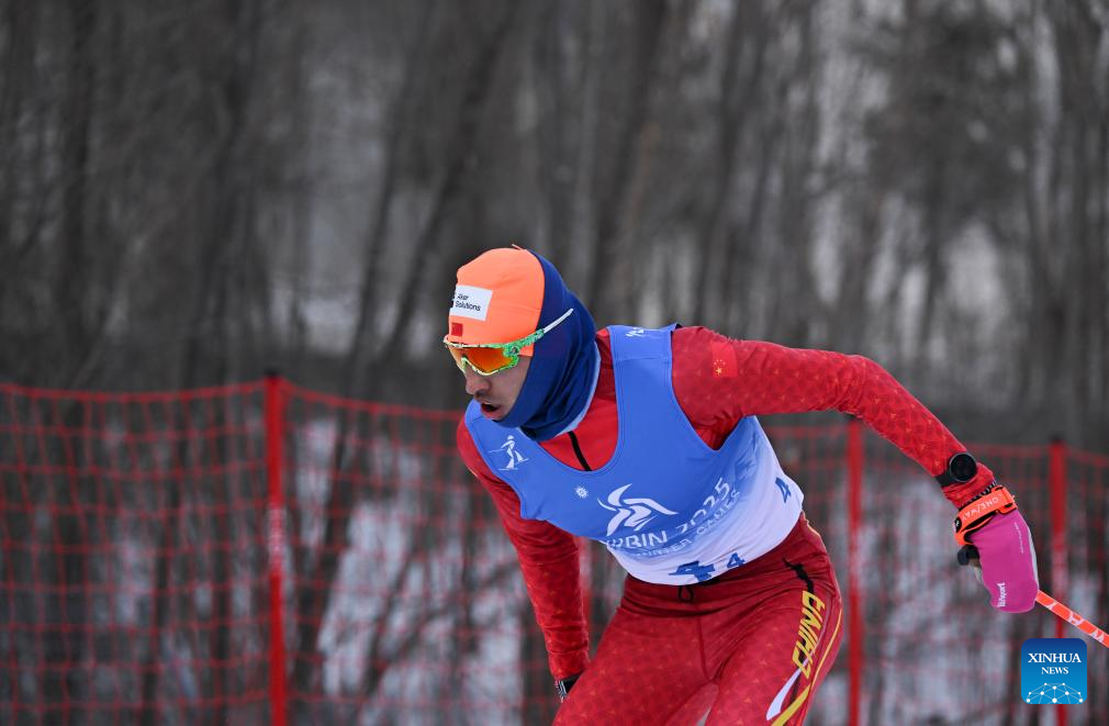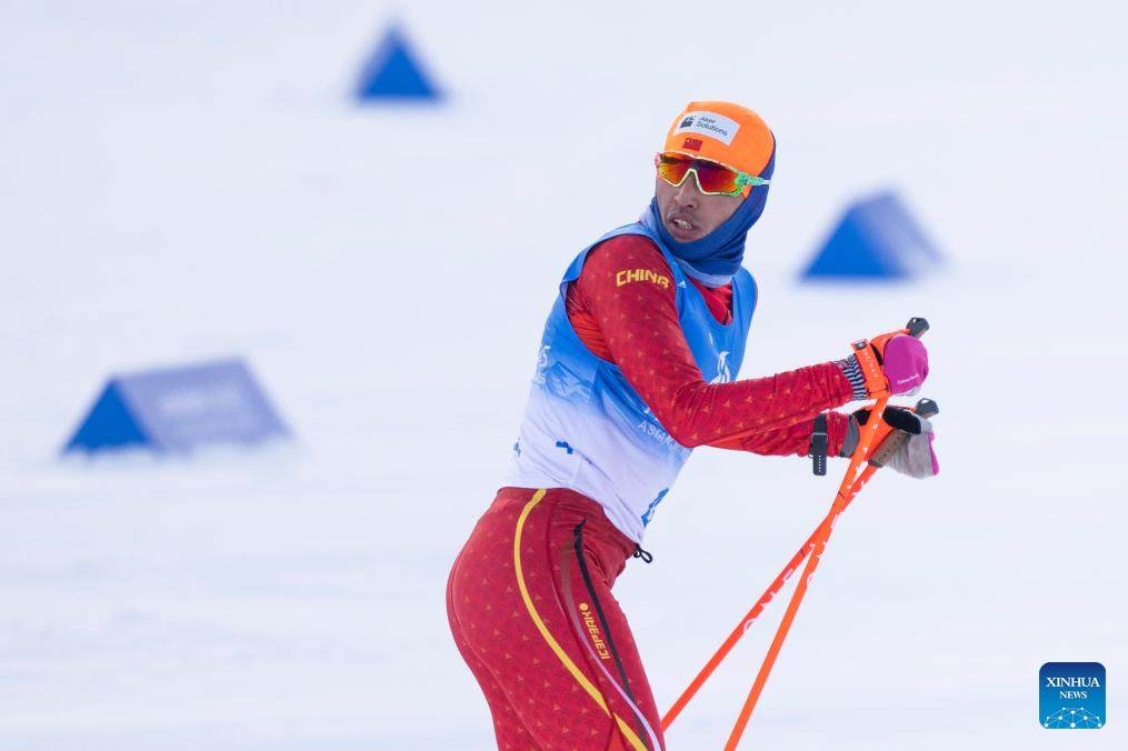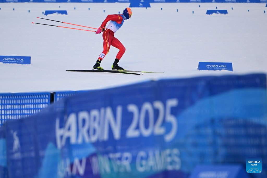 Bao Lin of China competes during the Cross-Country Skiing men's 4x7.5km relay match at the 9th Asian Winter Games in Yabuli, northeast China's Heilongjiang Province, Feb. 12, 2025. (Xinhua/Wu Zhizun)
