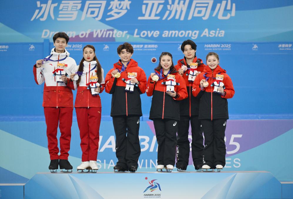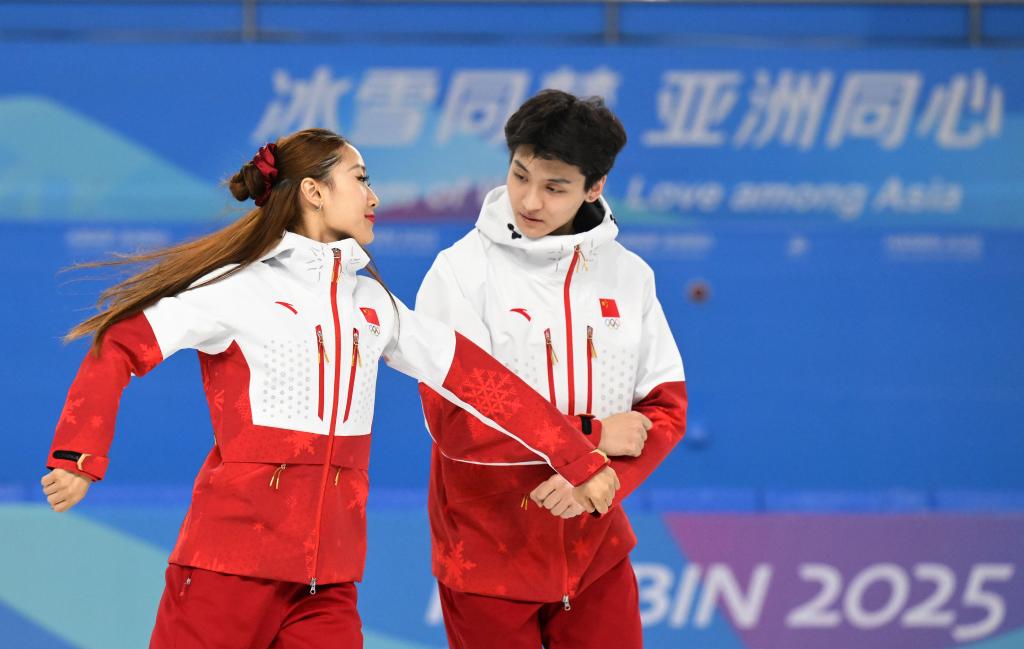 HARBIN, Feb. 12 (Xinhua) -- Ren Junfei and Xing Jianing secured China's first figure skating medal in the ice dance event at the Harbin Asian Winter Games, while Cidanyuzhen and Buluer led Chinese skiers to a podium sweep in the ski mountaineering mixed relay on Wednesday.