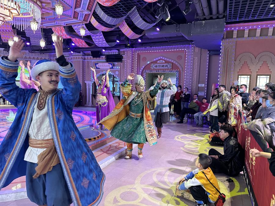 LANZHOU, Feb. 12 (Xinhua) -- Zare Salman found himself entranced in the bustling streets of Lanzhou, capital of northwest China's Gansu Province, as Silk Road merchants shouted out their wares, Dunhuang mural dancers twirled with elegance, and an actor enacted Zhang Qian's historic departure on his westward mission.