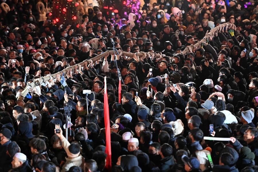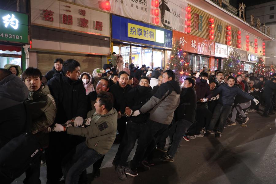 LANZHOU, Feb. 13 (Xinhua) -- With the Lantern Festival of the first Chinese lunar month approaching, 63-year-old Hui ethnic elder Ma Baorui excitedly joined crowds gathering around an 1,800-meter-long steel rope in Lintan County, in northwest China's Gansu province, where a spectacular cross-ethnic tradition - a tug of war dating back six centuries - was about to start.