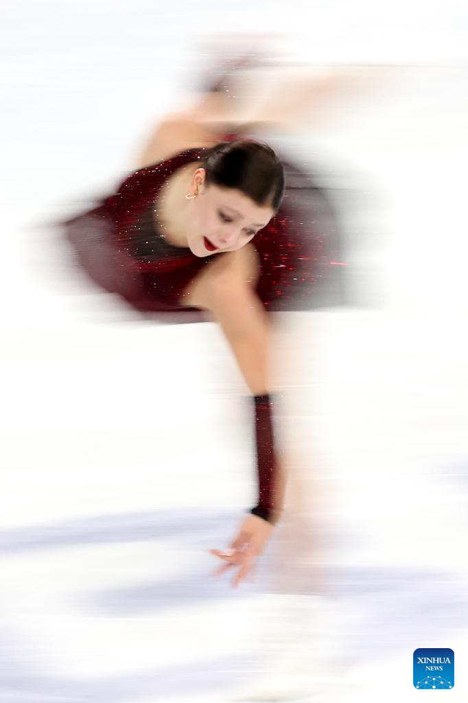 Sofia Samodelkina of Kazakhstan competes during the women single skating short program of figure skating event at the 9th Asian Winter Games in Harbin, northeast China's Heilongjiang Province, Feb. 12, 2025. (Xinhua/Yang Lei)