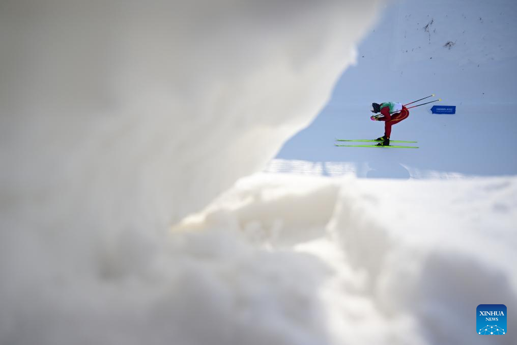 Cirenzhandui of China competes during the Cross-Country Skiing men's 4x7.5km relay match at the 9th Asian Winter Games in Yabuli, northeast China's Heilongjiang Province, Feb. 12, 2025. (Xinhua/Zhang Long)