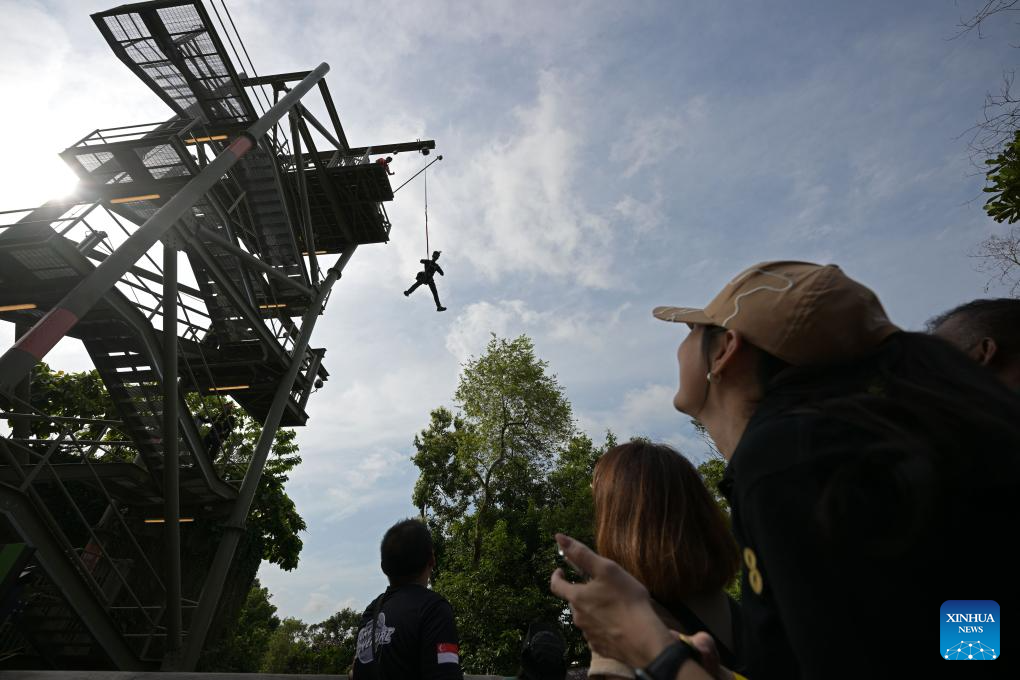 Journalists attend the media preview of the newest attraction, Rainforest Wild Asia, at the Mandai Wildlife Reserve in Singapore on Feb. 12, 2025. Singapore's fifth zoological park, Rainforest Wild Asia at the Mandai Wildlife Reserve, held a media preview on Wednesday, in the lead-up to its official public opening in March this year. (Xinhua/Then Chih Wey)