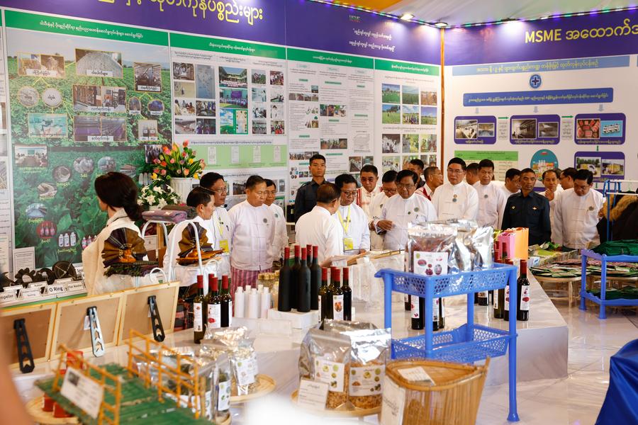 YANGON, Feb. 13 (Xinhua) -- Myanmar's Micro, Small, and Medium Enterprise (MSME) exhibition in Nay Pyi Taw brought together a diverse range of businesses, showcasing both locally produced and imported goods.