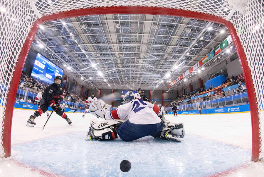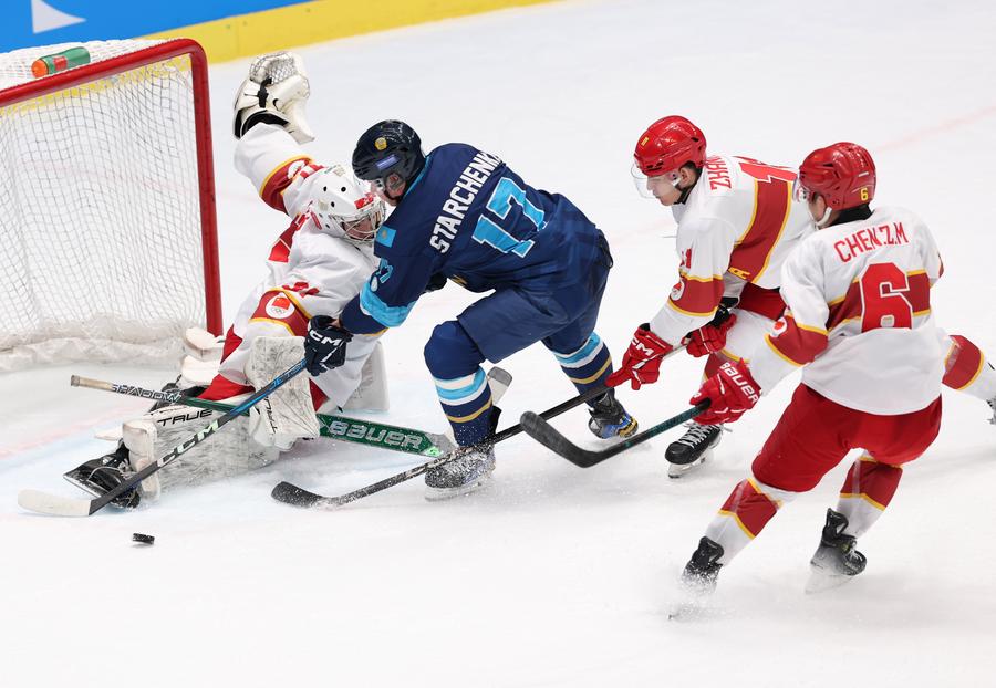 HARBIN, Feb. 13 (Xinhua) -- Kazakhstan stunned China 3-1 in the men's ice hockey semifinal at the 2025 Harbin Asian Winter Games on Thursday, setting up a gold medal clash with Japan.