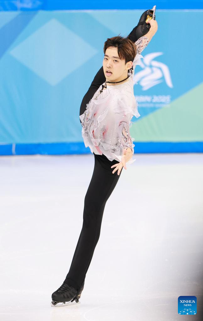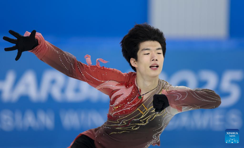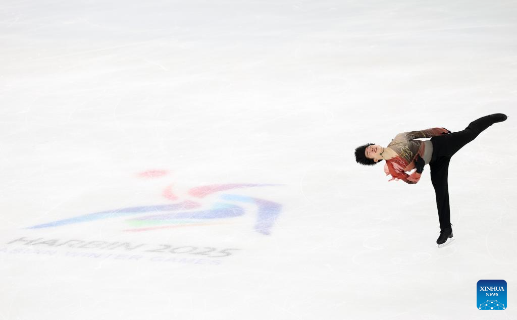 Chen Yudong of China competes during the men single skating free skating of figure skating event at the 9th Asian Winter Games in Harbin, northeast China's Heilongjiang Province, Feb. 13, 2025. (Xinhua/Huang Wei)