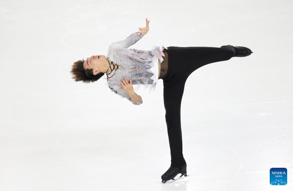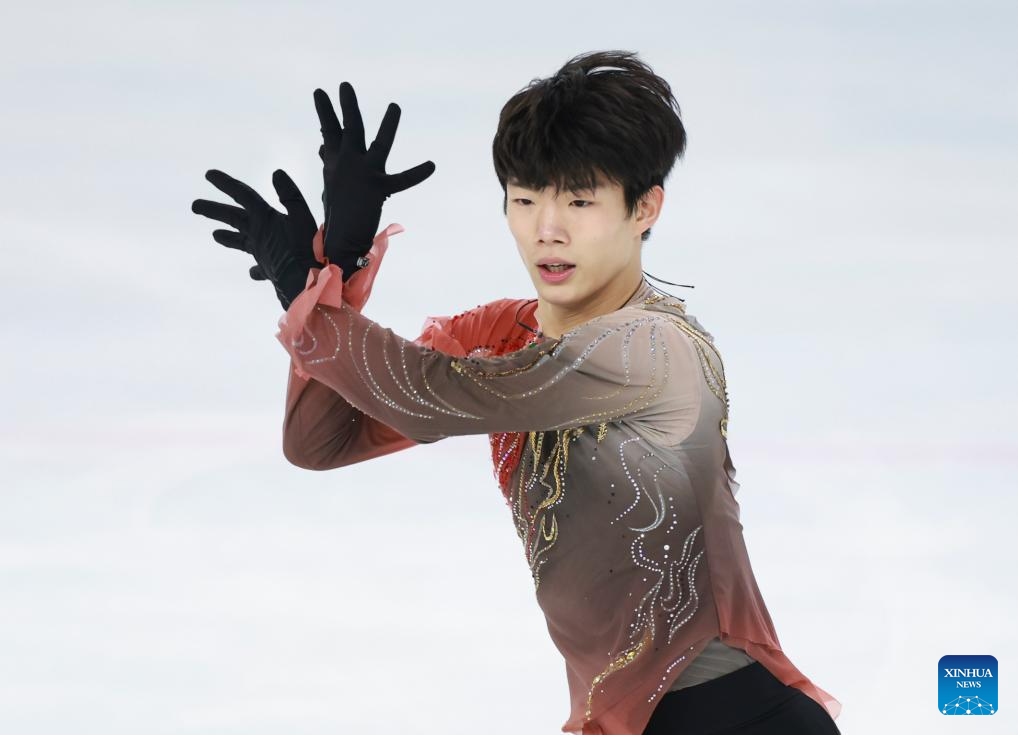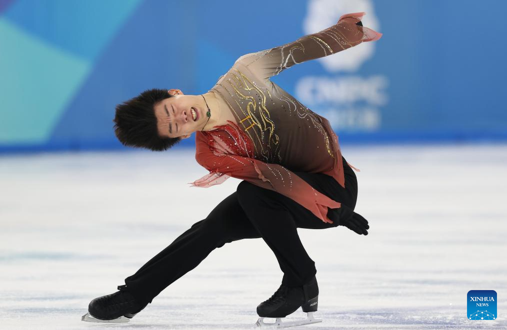 Chen Yudong of China competes during the men single skating free skating of figure skating event at the 9th Asian Winter Games in Harbin, northeast China's Heilongjiang Province, Feb. 13, 2025. (Xinhua/Zhang Tao)