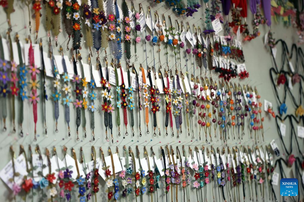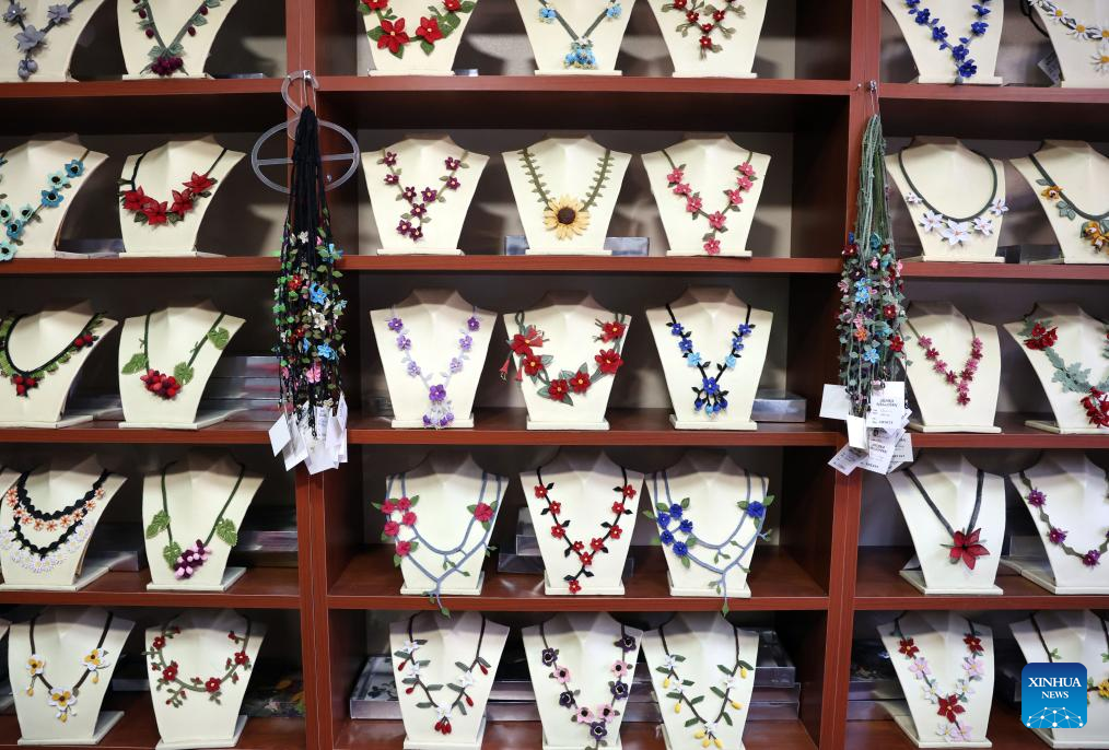 Silk needle lace products are pictured at a shop in Nallihan, a remote district of Türkiye's capital Ankara, on Feb. 10, 2025. (Mustafa Kaya/Handout via Xinhua)