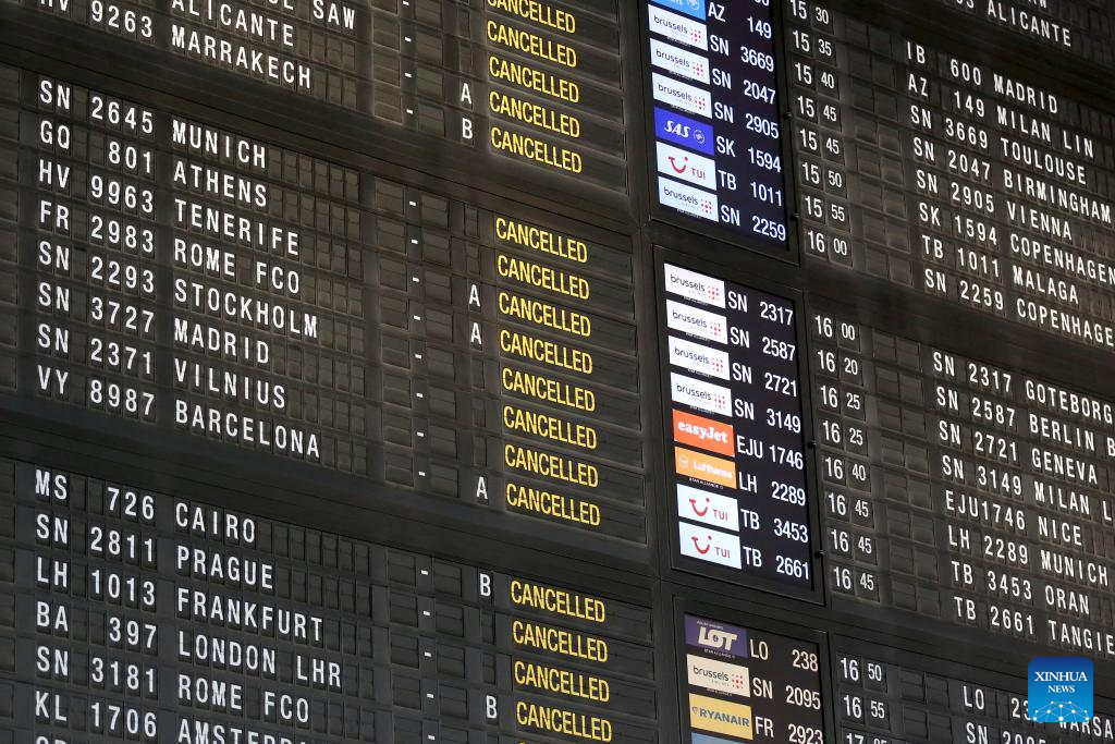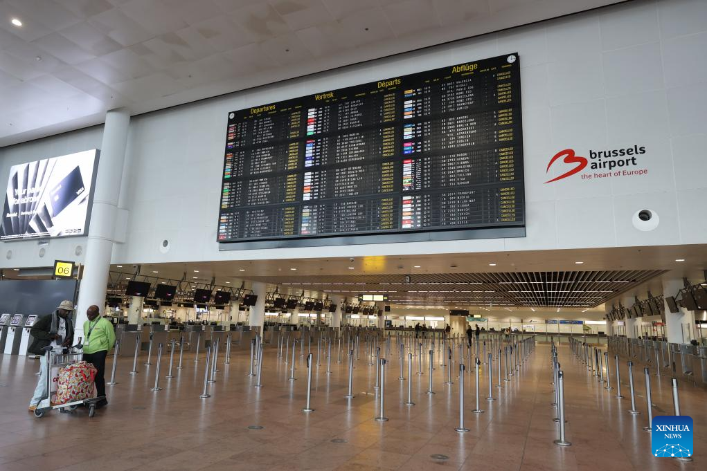 The demonstration brought parts of the capital to a standstill, halting traffic on key routes and disrupting public transport. Brussels Airport canceled 430 flights as ground operations were suspended, while metro, bus, and tram services were severely affected.(Xinhua/Zhao Dingzhe)